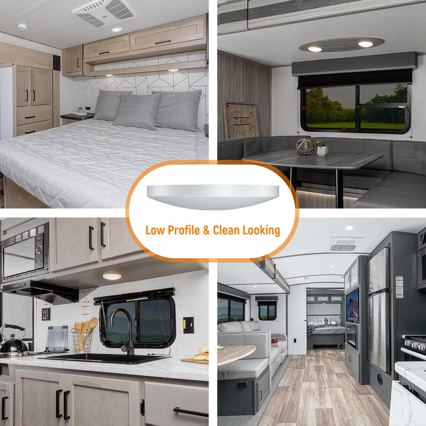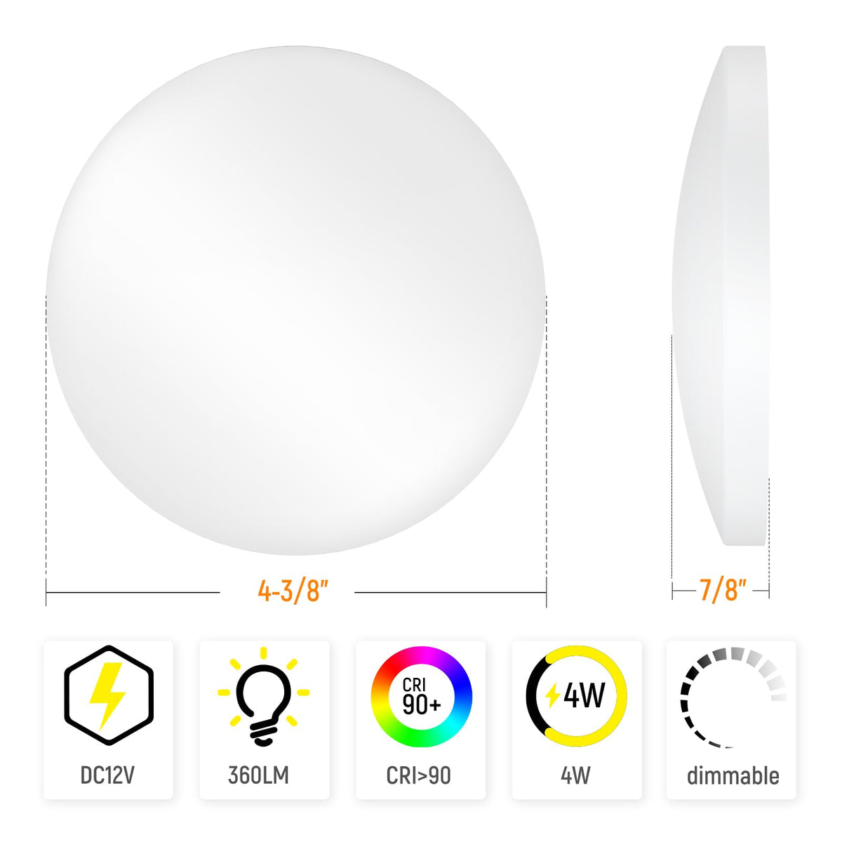 Obeaming 4 Pack 4.5 Inch 12V Rv Interior Led Puck Light 360Lm Surface Mount Ceiling Dome Light For Camper Van Travel Trailer Boat Truck Caravan Interior Lighting(5000K)
