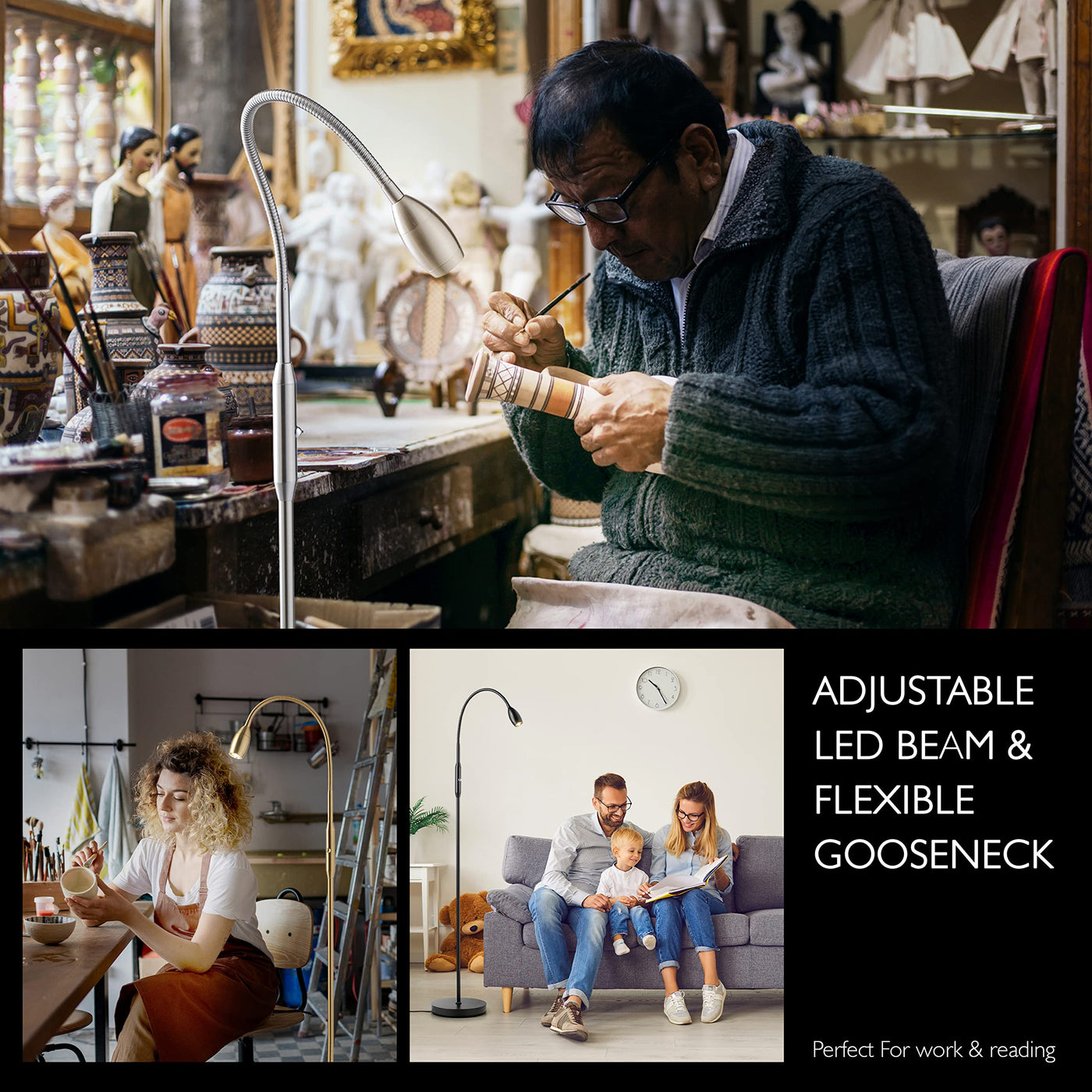 Q: Can I use the lamp for reading or crafting?A: Yes, the lamp is ideal for reading and crafting. Its adjustable beam and flexible gooseneck provide targeted lighting where you need it.
