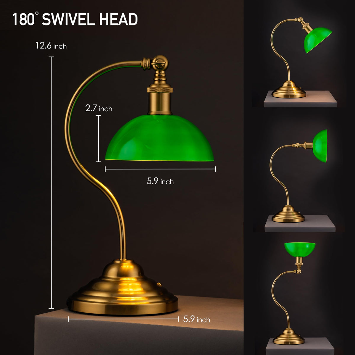 Q: What materials are used in the O'Bright Bankers LED Table Lamp?A: The lamp features a classic design with an antique brass finish and an elegant green glass shade, combining durability with aesthetic appeal to enhance your home decor.