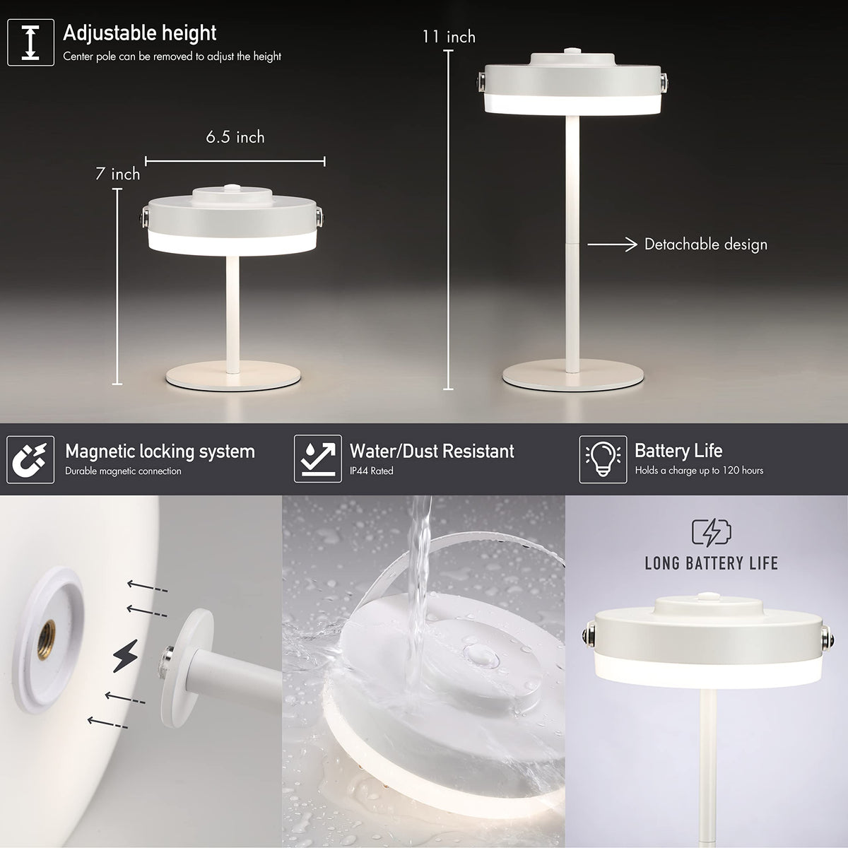 - **Durable Magnetic Locking System:** The lamp's stem is designed for adaptability—completely remove it or shorten it to suit your needs. Use both poles for maximum height, remove one for a mid-range option, or detach the entire stem for compact carrying. The easy-carry handle also serves as a stable lamp stand or a hanging mount, making it ideal for hiking and outdoor activities.