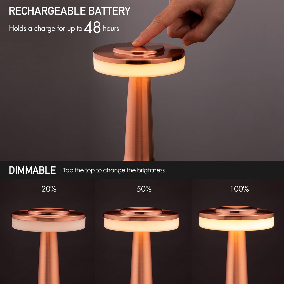 O'Bright Portable Led Table Lamp - Touch Sensor, 3 Brightness Levels, Rechargeable, Rose Gold