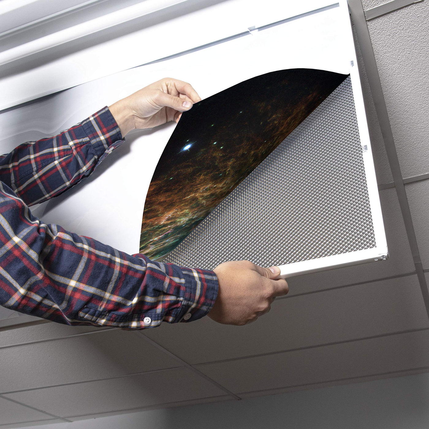 Introducing Octo Lights, the ideal solution for transforming harsh fluorescent lighting into a more serene and visually appealing environment. Our Astronomy design fluorescent light covers are designed for use in various settings, including homes, schools, and offices. These light diffuser panels reduce glare, creating a calming atmosphere that enhances any space.