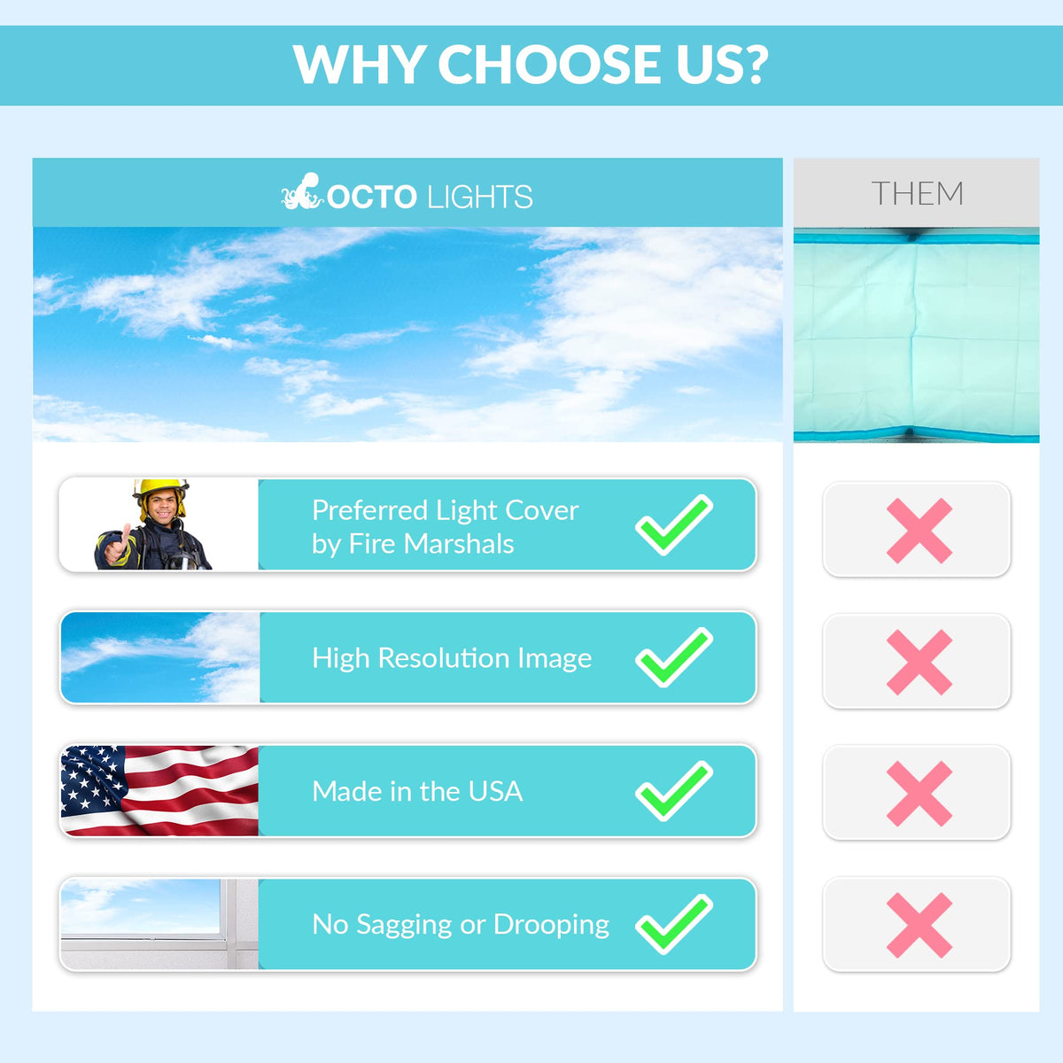 Q: Can I use Octo Lights covers with LED fixtures?A: The Octo Lights covers are specifically designed for traditional fluorescent lighting systems. For LED fixtures, it is recommended to contact the manufacturer for compatibility options.