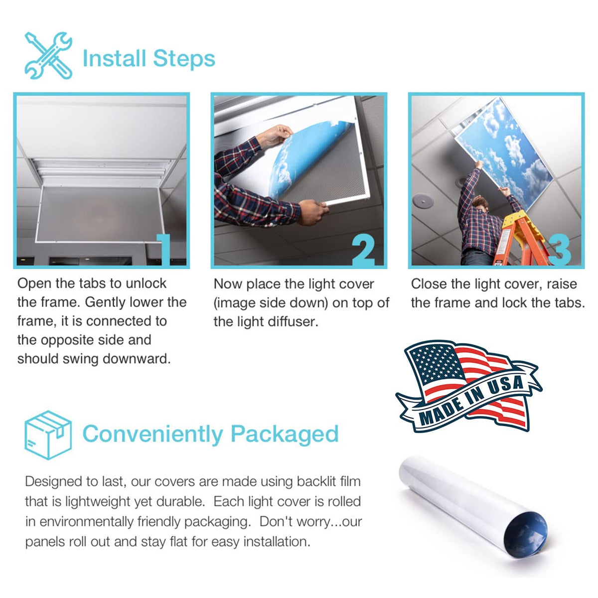 OCTO LIGHTS Fluorescent Light Covers for Ceiling Lights 2x4, Backlit Film, Heavenly Stratocumulus, Model CLD-016-2x4