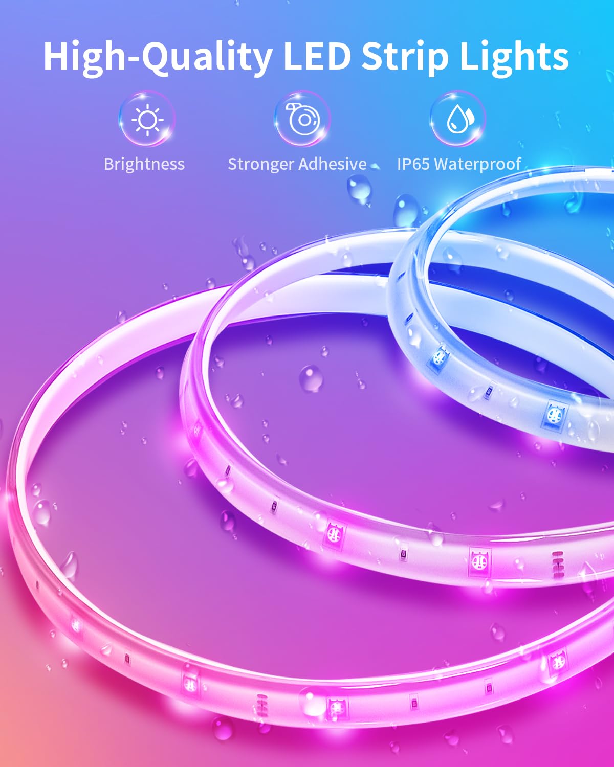 Q: Are the Odcolour 33ft Outdoor Waterproof LED Light Strips suitable for outdoor use?A: Yes, the Odcolour LED Light Strips are designed with a waterproof transparent glue layer, making them suitable for both indoor and outdoor applications.