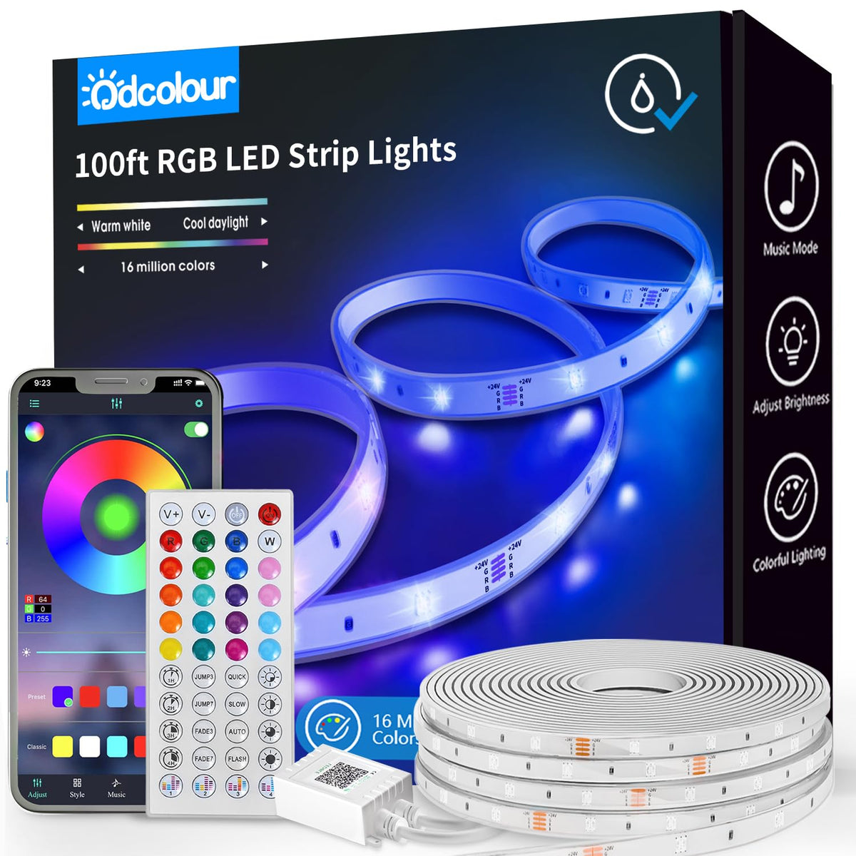 Odcolour 99Ft 600 Lights Outdoor Led Strip Lights Waterproof, 24V Rgb Outdoor Lights Bluetooth App Remote Music Sync, Rope Lights, Christmas Lights Decor