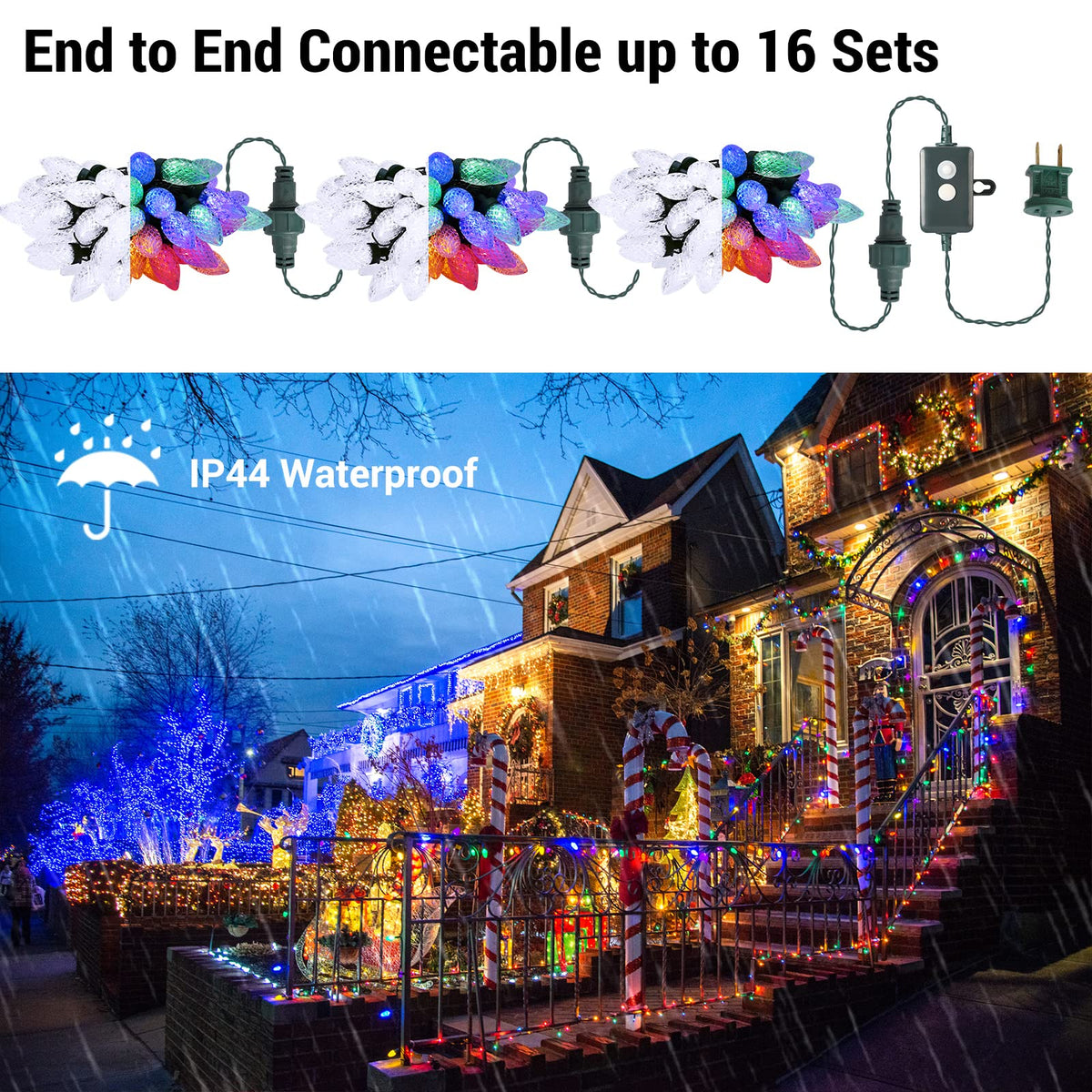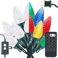 Multi-modes C9 Christmas Lights: These C9 string lights have 12 lighting modes, you can adjust the modes of the light via the remote control or green controller.