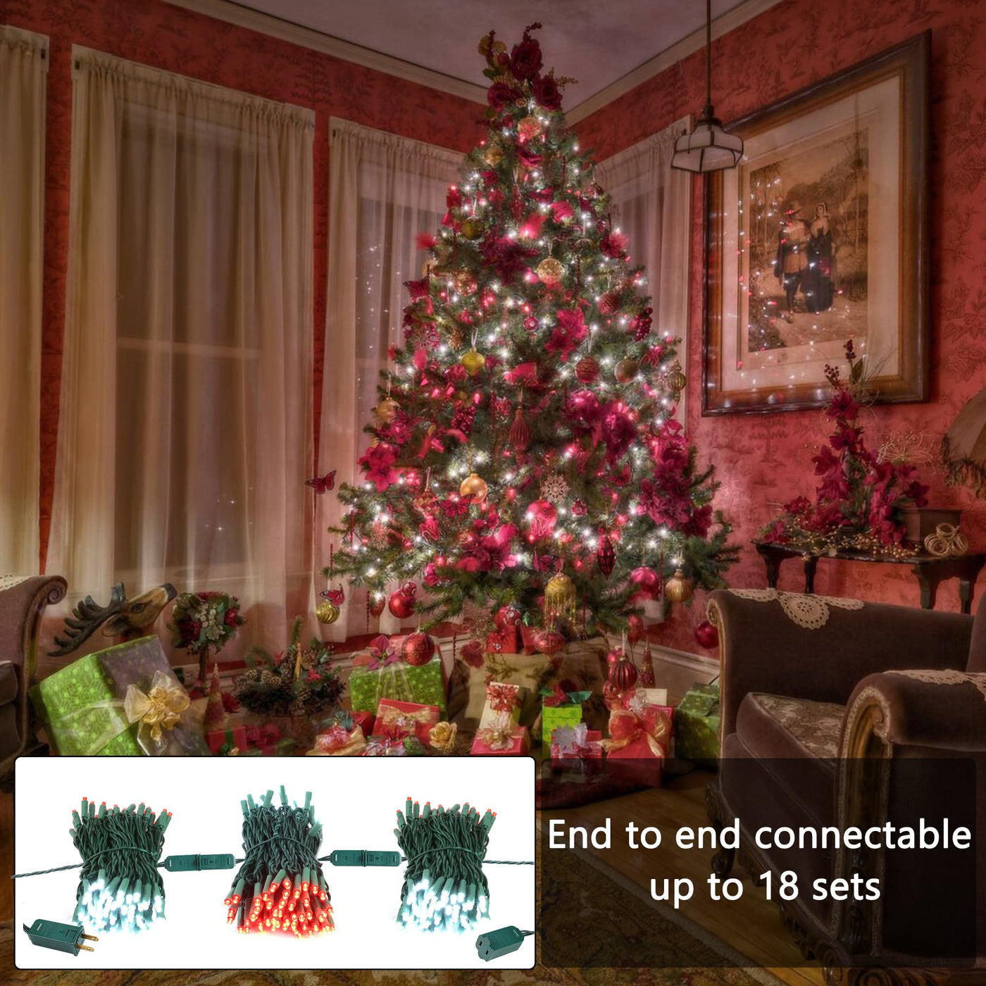 Odeetronic Red & White Christmas Lights, 33Ft 100Led Twinkle Christmas Lights, 5Mm Wide Angle Mini Christmas Lights, Connectable