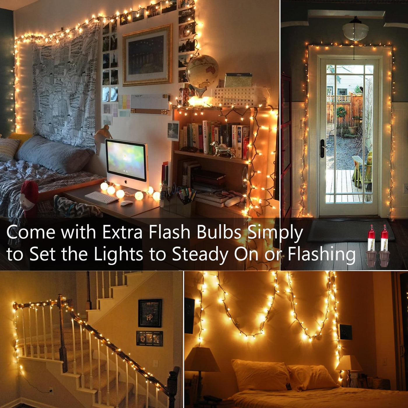 ? Two Lighting Modes: Switch between steady-on and flash effects by replacing the bulbs at both ends of the string.