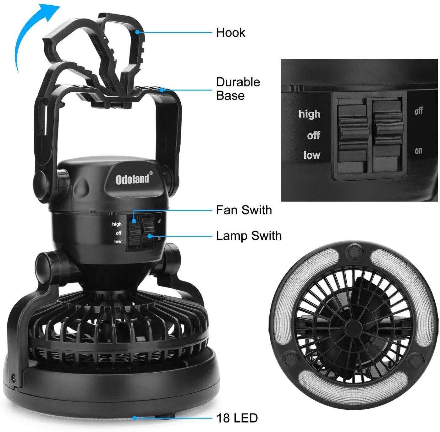 Camping Essentials: The Odoland fan features a dual purpose as both a tent fan and a powerful lantern. The fan circulates air to help you cool down instantly while the integrated lantern brightens up your tent, creating a comfortable outdoor environment.