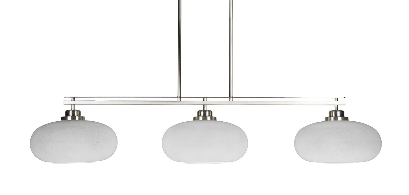 Q: What is the finish of the Odyssey 3 Light Island?A: The Odyssey 3 Light Island features a brushed nickel finish, which provides a modern and sleek look that complements various decor styles.