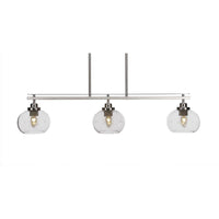 2636-BN-202 Odyssey 3 Island Light Shown In Brushed Nickel Finish With 7" Clear Bubble Glass. Rated for: Dry location. Light Bulb Data: 3 Medium 100 watt. Bulb included: No.