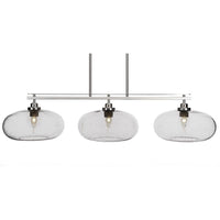 2636-BN-206 Odyssey 3 Island Light Shown In Brushed Nickel Finish With 13" Clear Bubble Glass. Rated for: Dry location. Light Bulb Data: 3 Medium 100 watt. Bulb included: No.