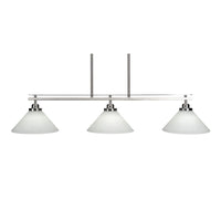 2636-BN-314 Odyssey 3 Island Light Shown In Brushed Nickel Finish With 10" White Muslin Glass. Rated for: Dry location. Light Bulb Data: 3 Medium 100 watt. Bulb included: No.