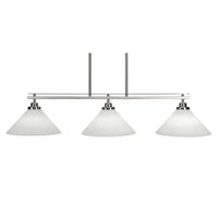 Q: What is the finish of the Odyssey 3 Light Island?A: The Odyssey 3 Light Island features a brushed nickel finish, providing a modern and sleek look that complements various decor styles.