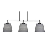 Q: What is the finish of the Odyssey 3 Light Island?A: The Odyssey 3 Light Island features a sleek Brushed Nickel finish, adding a modern touch to your kitchen or dining area.