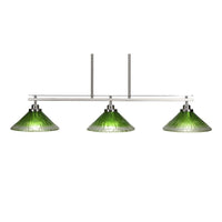 2636-BN-437 Odyssey 3 Island Light Shown In Brushed Nickel Finish With 10" Kiwi Green Crystal Glass. Rated for: Dry location. Light Bulb Data: 3 Medium 100 watt. Bulb included: No.