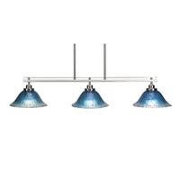 2636-BN-438 Odyssey 3 Island Light Shown In Brushed Nickel Finish With 10" Teal Crystal Glass. Rated for: Dry location. Light Bulb Data: 3 Medium 100 watt. Bulb included: No.