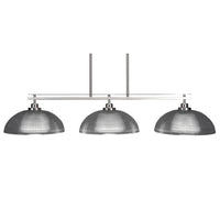 2636-BN-540 Odyssey 3 Island Light Shown In Brushed Nickel Finish With 13" Clear Ribbed Glass. Rated for: Dry location. Light Bulb Data: 3 Medium 100 watt. Bulb included: No.