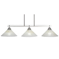 2636-BN-702 Odyssey 3 Island Light Shown In Brushed Nickel Finish With 12" Gold Ice Glass. Rated for: Dry location. Light Bulb Data: 3 Medium 100 watt. Bulb included: No.