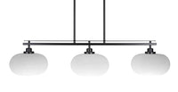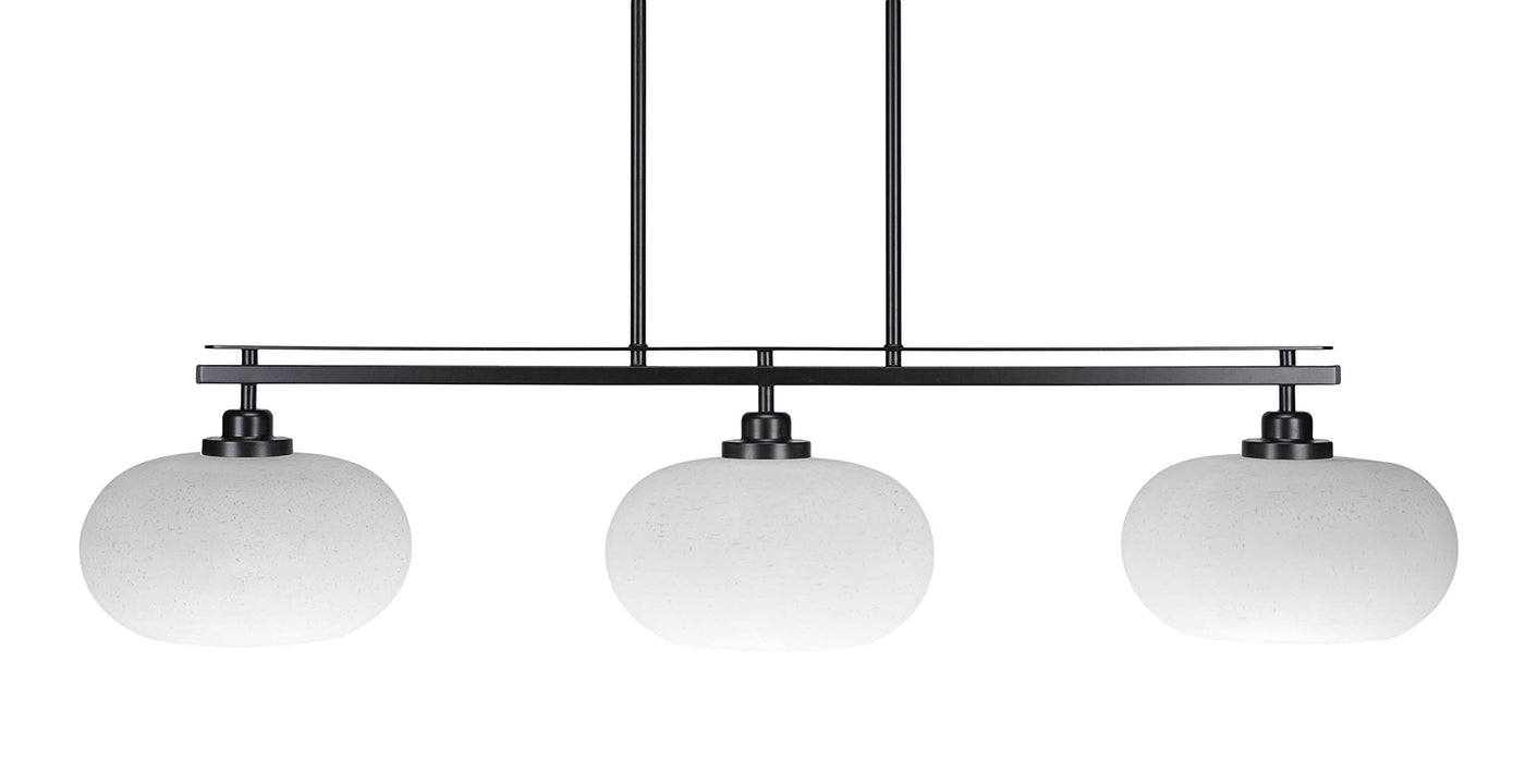 2636-MB-214 Odyssey 3 Island Light Shown In Matte Black Finish With 10" White Muslin Glass. Rated for: Dry location. Light Bulb Data: 3 Medium 150 watt. Bulb included: No.