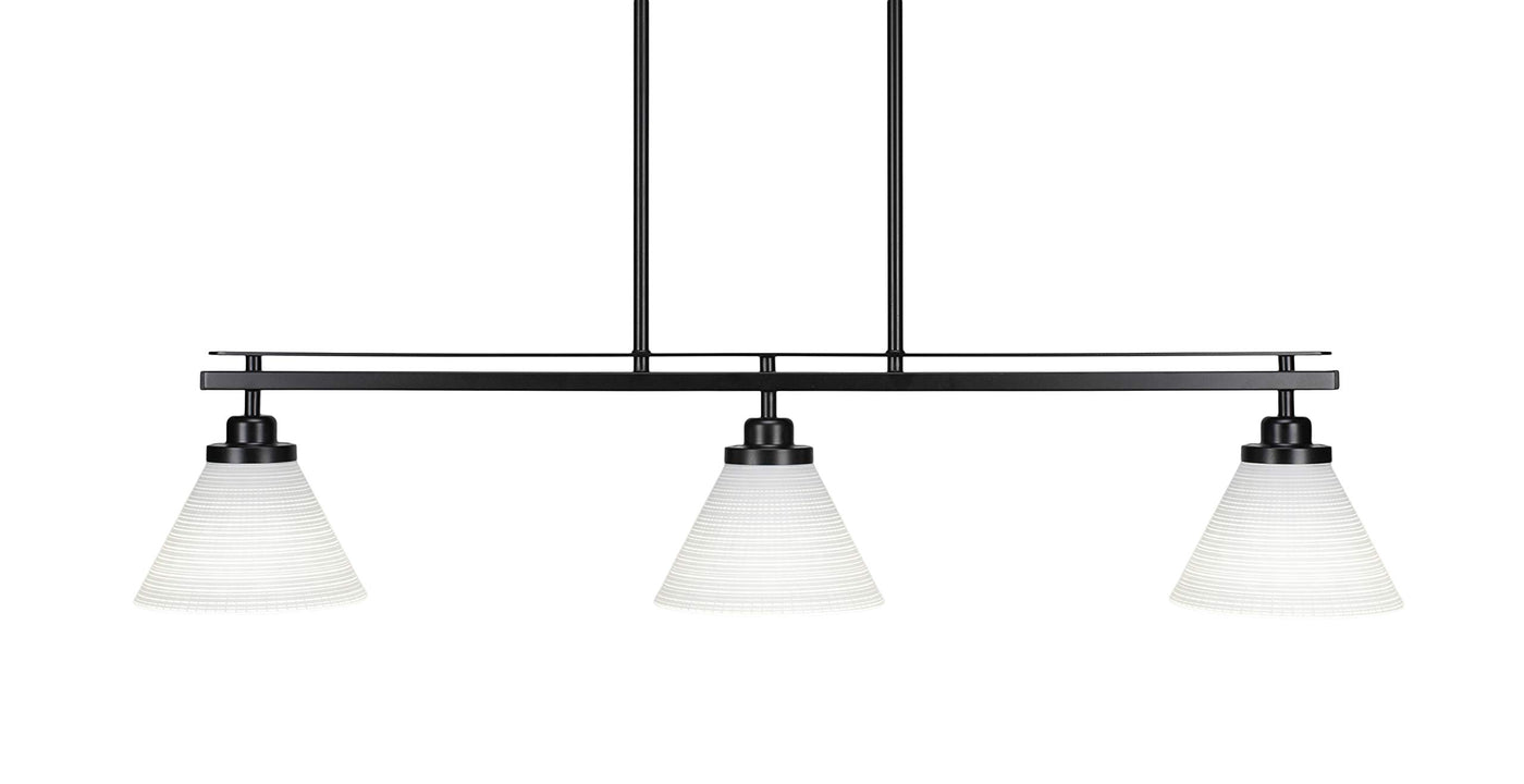 2636-MB-4051 Odyssey 3 Island Light Shown In Matte Black Finish With 7" White Matrix Glass. Rated for: Dry location. Light Bulb Data: 3 Medium 150 watt. Bulb included: No.