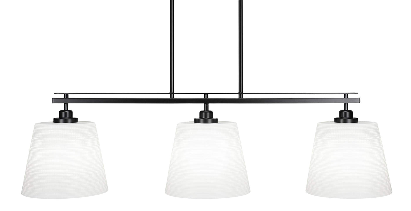 2636-MB-4081 Odyssey 3 Island Light Shown In Matte Black Finish With 10" White Matrix Glass. Rated for: Dry location. Light Bulb Data: 3 Medium 150 watt. Bulb included: No.
