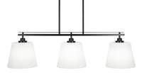 Q: What is the design style of the Odyssey 3 Light Island?A: The Odyssey 3 Light Island features a modern design with a matte black finish and 10" white matrix glass, making it a stylish addition to contemporary kitchens and dining areas.