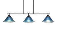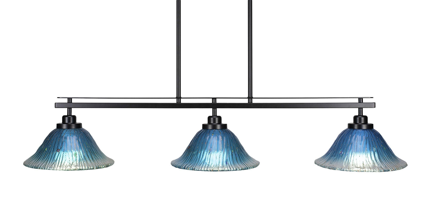 2636-MB-438 Odyssey 3 Island Light Shown In Matte Black Finish With 10" Teal Crystal Glass. Rated for: Dry location. Light Bulb Data: 3 Medium 150 watt. Bulb included: No.