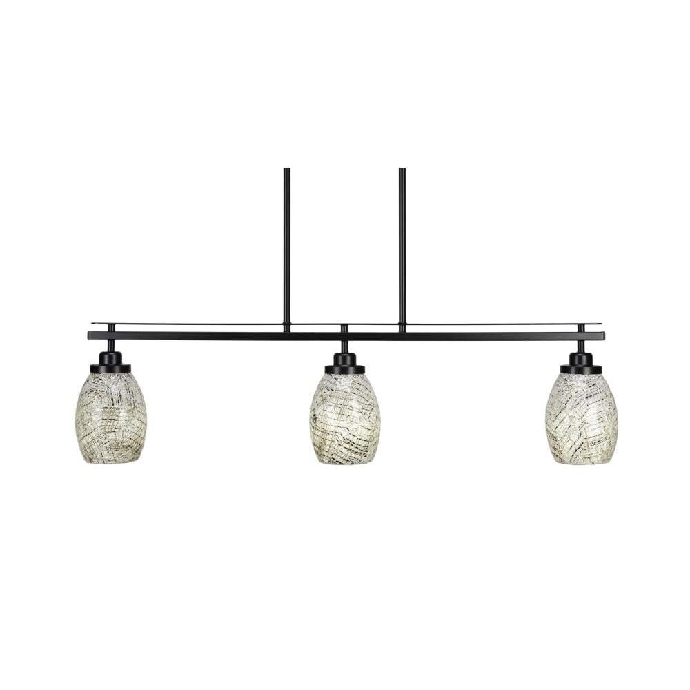 2636-MB-5054 Odyssey 3 Island Light Shown In Matte Black Finish With 5" Natural Fusion Glass. Rated for: Dry location. Light Bulb Data: 3 Medium 100 watt. Bulb included: No.