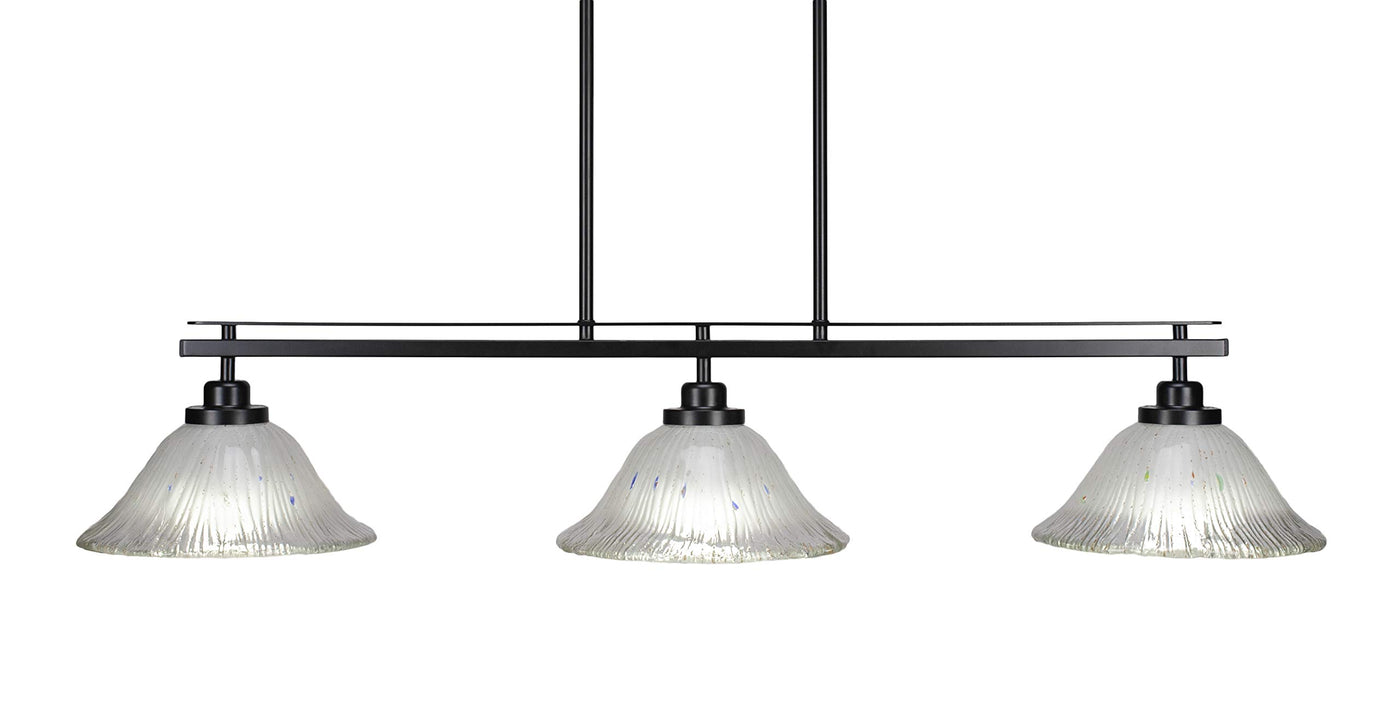 2636-MB-731 Odyssey 3 Island Light Shown In Matte Black Finish With 10" Frosted Crystal Glass. Rated for: Dry location. Light Bulb Data: 3 Medium 150 watt. Bulb included: No.