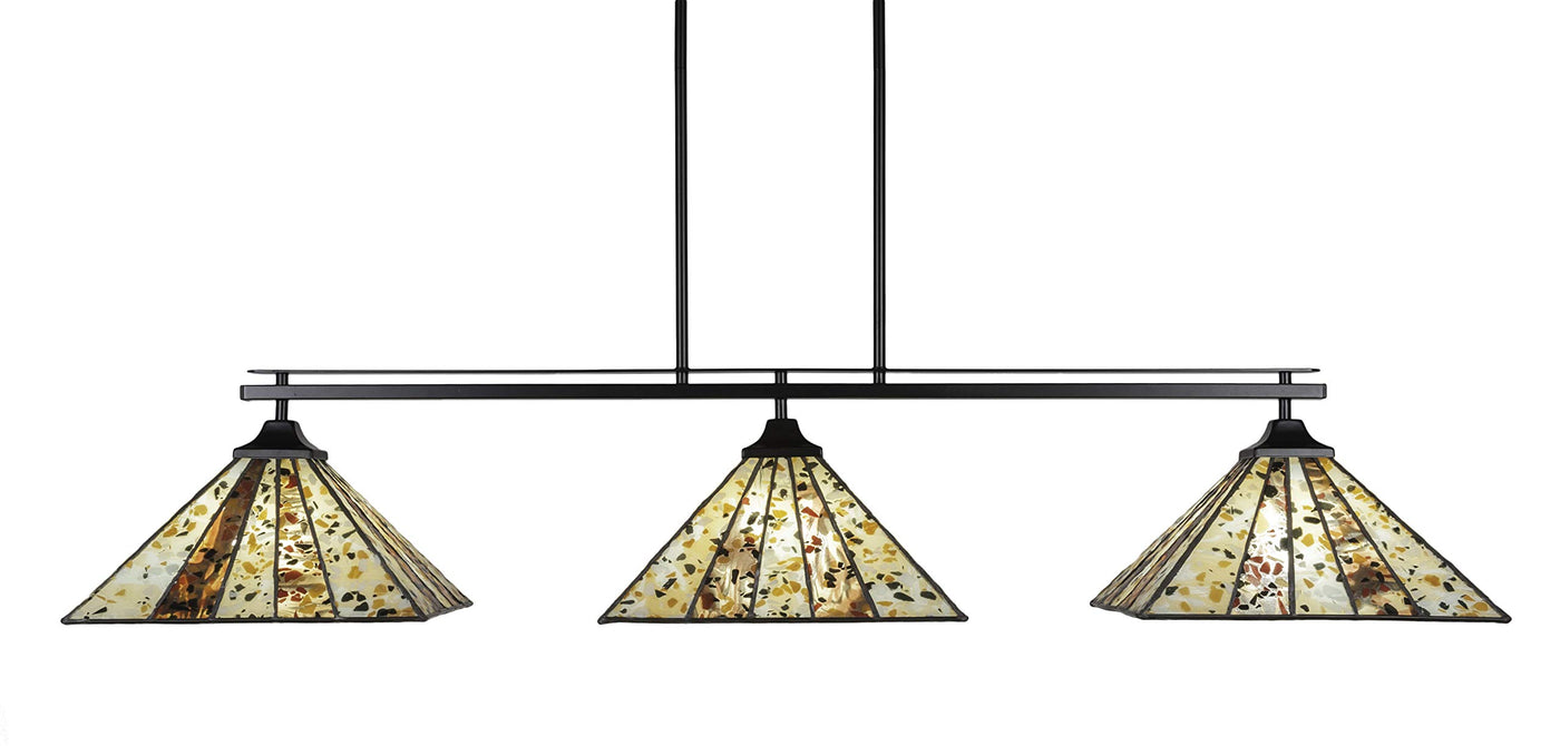 Q: How do I care for the glass shades on the Odyssey 3 Light Island?A: To maintain the beauty of the Fiesta Art Glass shades, gently clean them with a soft, dry cloth. Avoid harsh chemicals that may damage the finish.