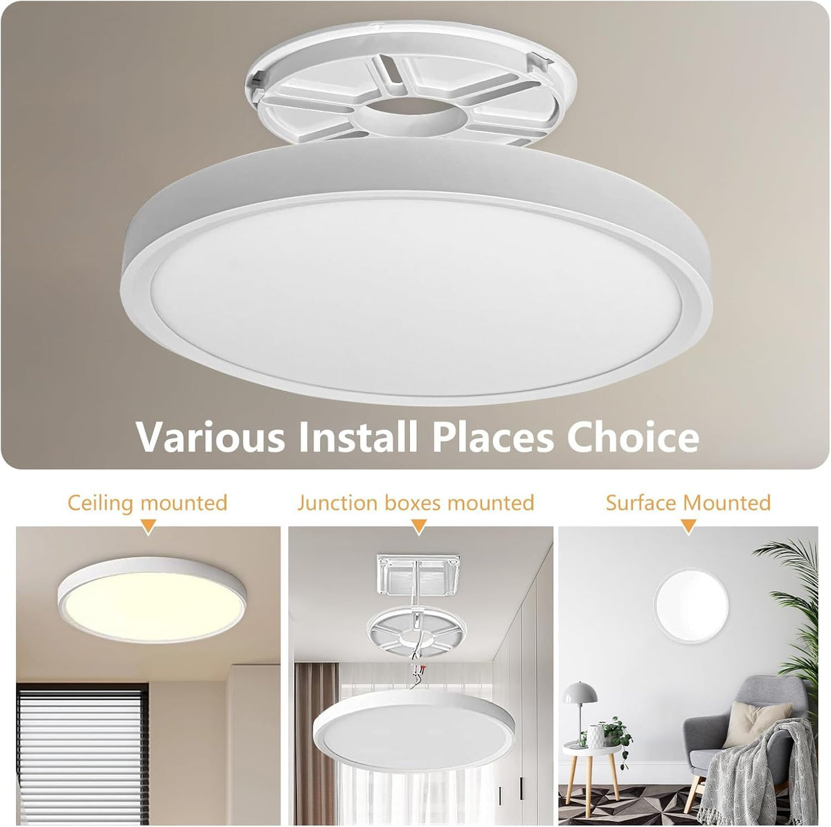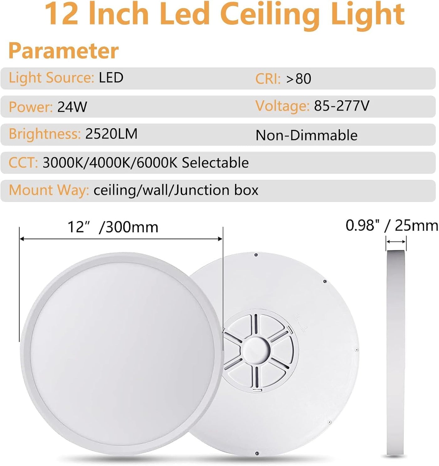 Offiy 12Pk 12 Inch Led Flush Mount Super Slim Ceiling Light, 24W, 2520Lm, 3000K/4000K/6000K Cct Selectable, Close To Ceiling Rou