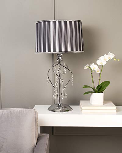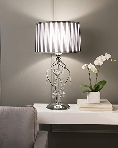 30.5-Inch Lady crystal table lamp. An all-around beautiful lamp. From the gorgeous black/white shade. To the twisted metal frame, accentuated by hanging crystals, there's nothing not to love about this lamp. It's for any of room. The instructions are included and easy to install.