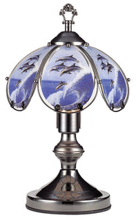 Ok Lighting 14" Touch Lamp - Black Chrome Dolphin & Waves Design, Metal Accent