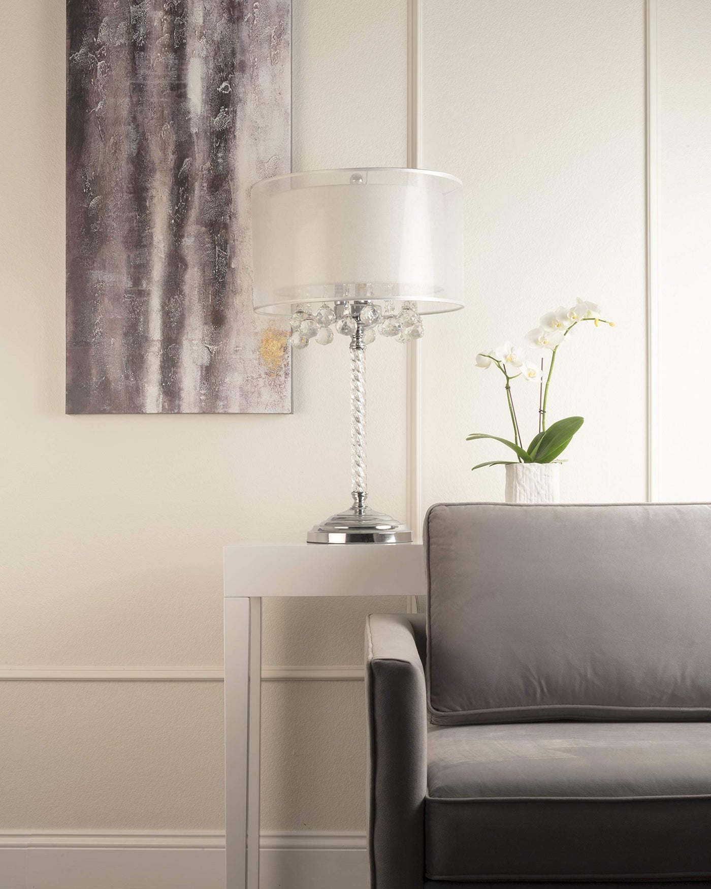 Transform your living space with the exquisite OK Lighting Table Lamp, a perfect blend of contemporary design and stylish flair. This chrome finished lamp not only illuminates your home but also serves as a stunning centerpiece that captivates with its unique features.