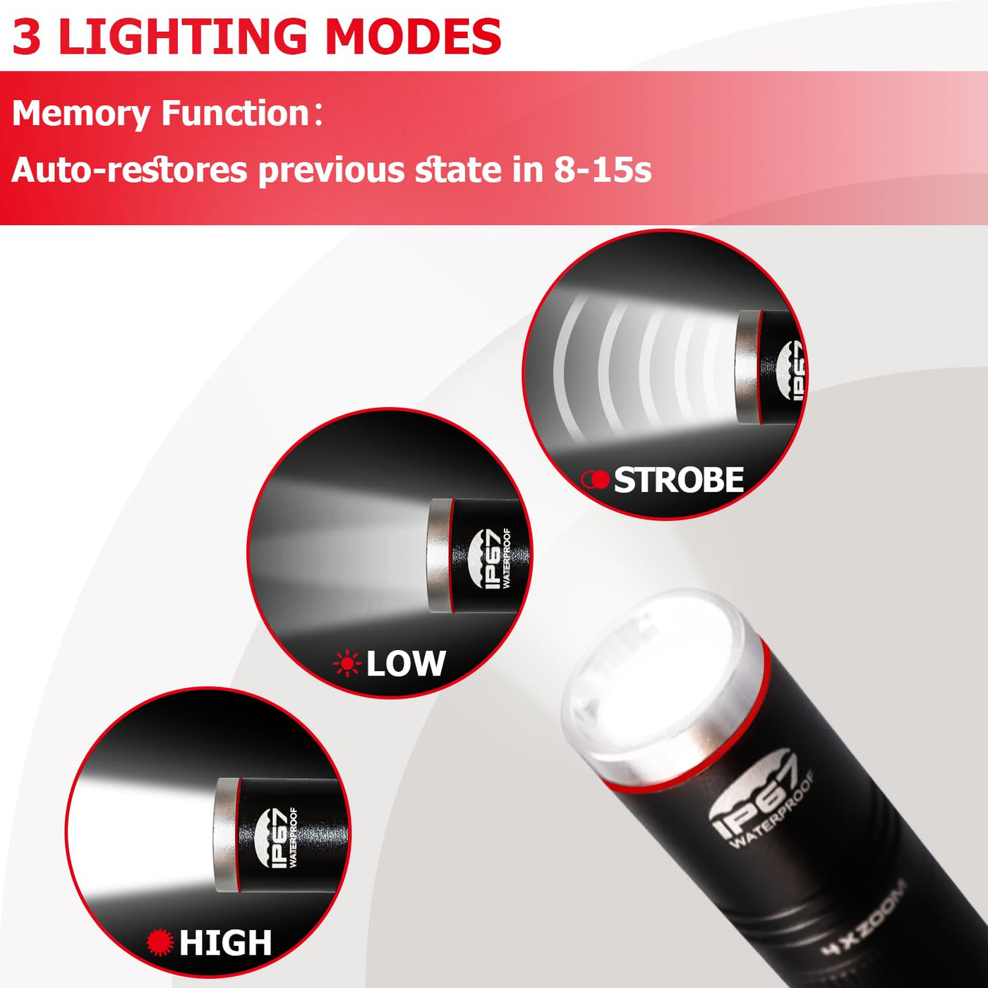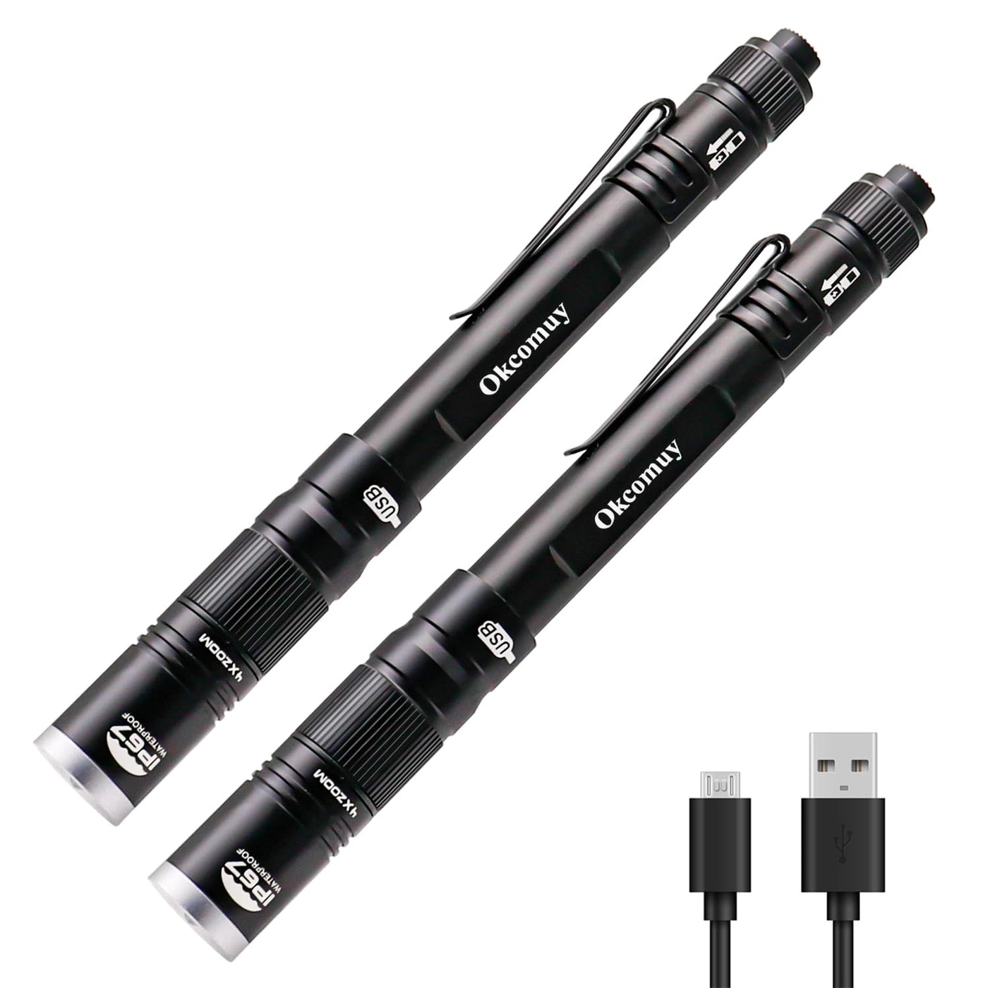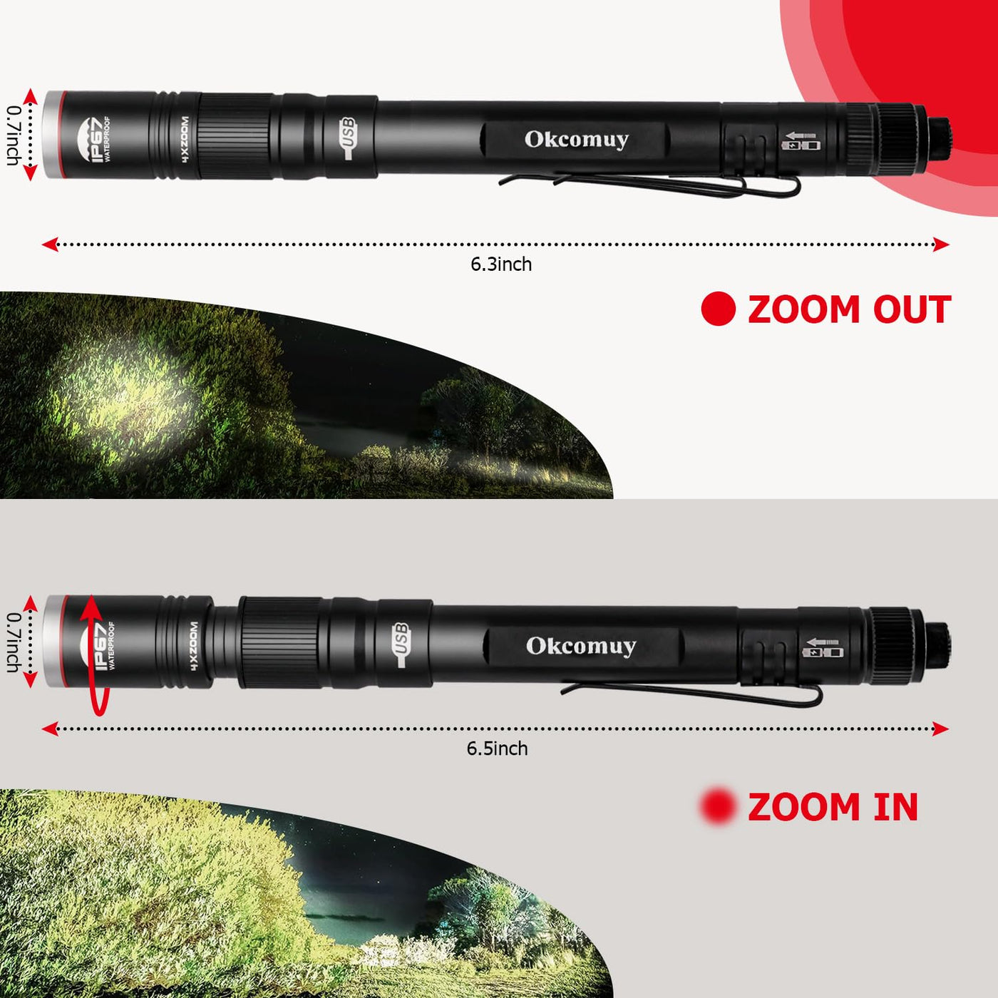 Okcomuy Rechargeable Pen Light Flashlight Ip67 Waterproof With Pocket Clip 4-Zoomable, Prefect Pocket Flashlight For Inspection,