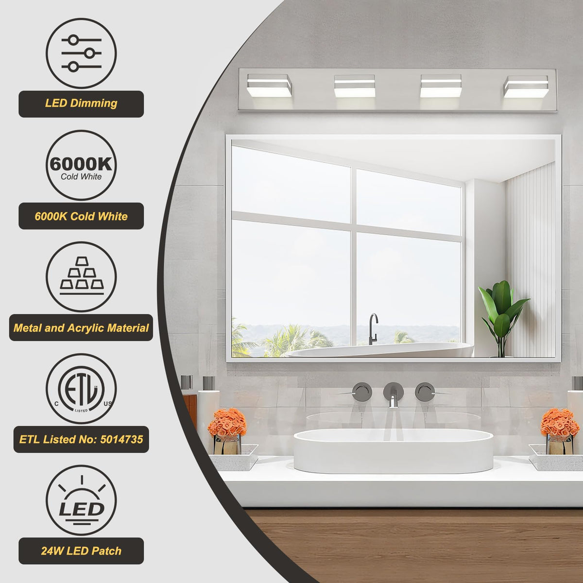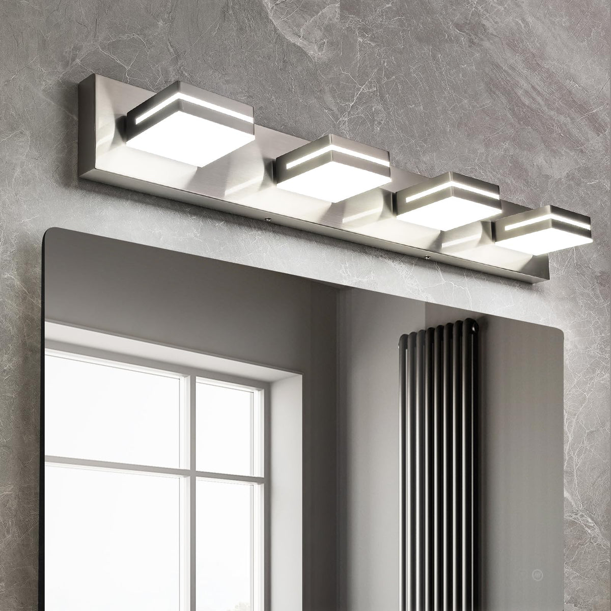 Okeli 4 Lights Bathroom Vanity Light Fixtures Brushed Nickel Led Dimmable Vanity Light Over Mirror Modern Wall Mounted Lighting