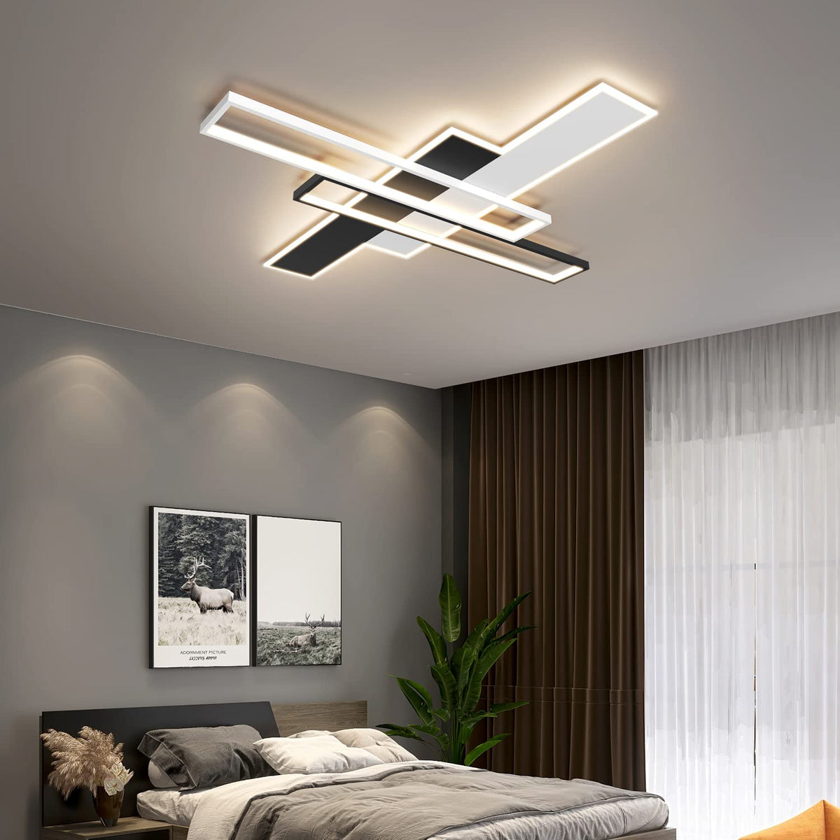 - **Elegant Modern Design**: The unique geometric shape of this ceiling lamp, featuring four sleek rectangles in a chic black and white color scheme, adds a touch of modern art to any room. Perfect for enhancing the ambiance in living rooms, dining areas, or offices.