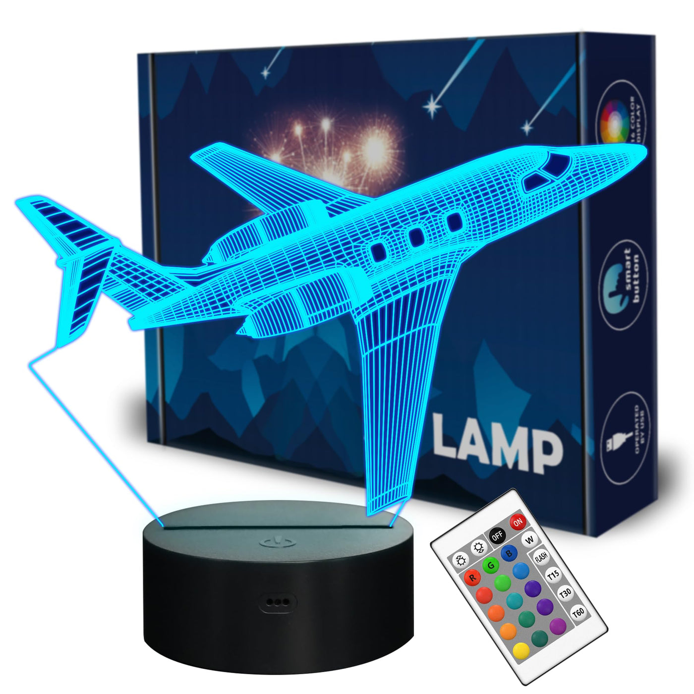 Main Features: 16 Color Options: Choose from a wide range of colors, including red, green, blue, yellow, cyan, purple, and more. You can select a single color or enjoy the dynamic experience of four modes with gradual color transitions. Touch Mode: Simply press the touch button once to switch to a different color. On the fifth press, the colors will change automatically. Remote Control Mode: This mode includes various functions, such as On/Off, 16-color selection using 16 keys, four different flash speeds, regular and irregular color changing patterns, and the ability to adjust the brightness with the dimmable function. Low Power Consumption: This 3D night light is designed for extended use without overheating. It utilizes high-quality LED lights that produce soft and uniform illumination, eliminating glare, flickering, and potential harm to your eyes. Creative 3D Night Light Designs: These unique designs are perfect for kids and make for ideal gifts. They can serve as decorative lights for bedrooms, kids' rooms, or be a thoughtful birthday gift for boys, girls, kids, babies, toddlers, and men. Details: Light Guide Plate Material: Made from optical acrylic. Power Consumption: Consumes 0.012 kW·h per 24 hours. LED Lifespan: Enjoy up to 10,000 hours of LED life. Power: Requires only 0.5W. Voltage: Works on a 5V power supply. Power Source: You can power it by connecting it to a USB interface or using three AA batteries (batteries not included). Package Size: Dimensions are 9.7 inches (length) by 6.7 inches (width) by 2.1 inches (height). Package Includes: 1x Optical acrylic plate 1x ABS Base (Size: 3.4 inches by 3.4 inches by 1.9 inches) 1x Remote control 1x USB cable (length: 39 inches) 1x User manual Please Note: To use the remote control, remember to remove the insulating strip located at the bottom of the remote. Avoid leaving fingerprints on the acrylic panel by holding it by the edges rather than the front. Purchase one for your family