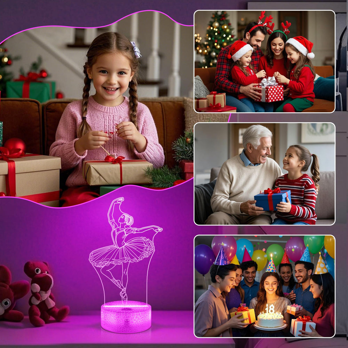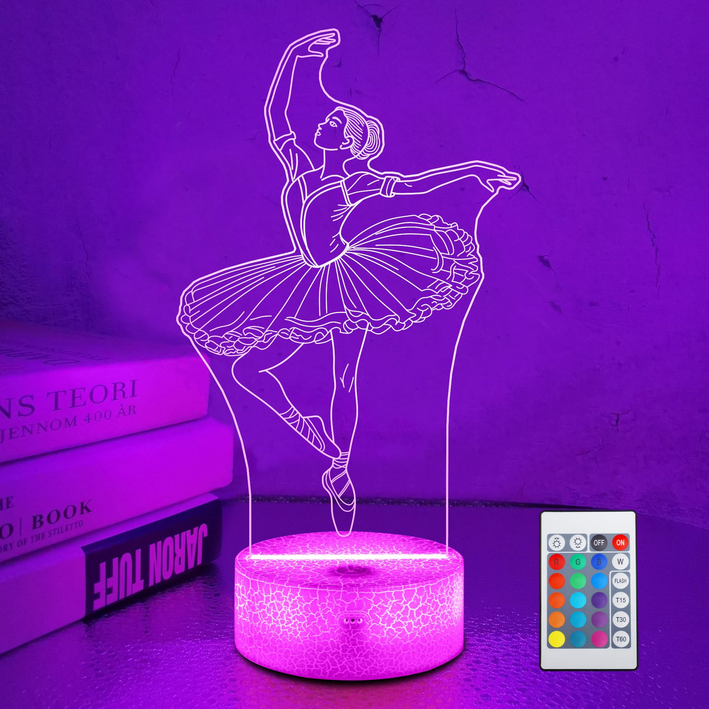 OkiyiD Ballerina Ballet Gifts for Girls Women, Ballets Girl Night Light 3D Illusion Lamp with 16 Color Changing Remote Control,