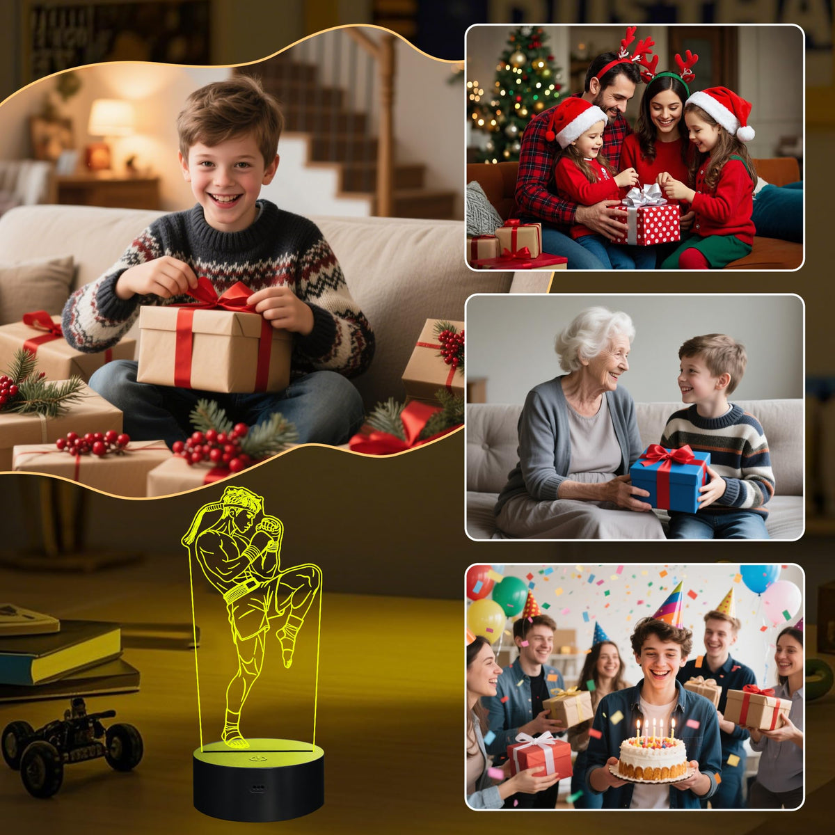 OkiyiD Muay Thai Gifts for Men, 3D Muay Thai Night Light Illusion Lamp with 16 Colors Remote Control, Martial Art MMA Gift for K