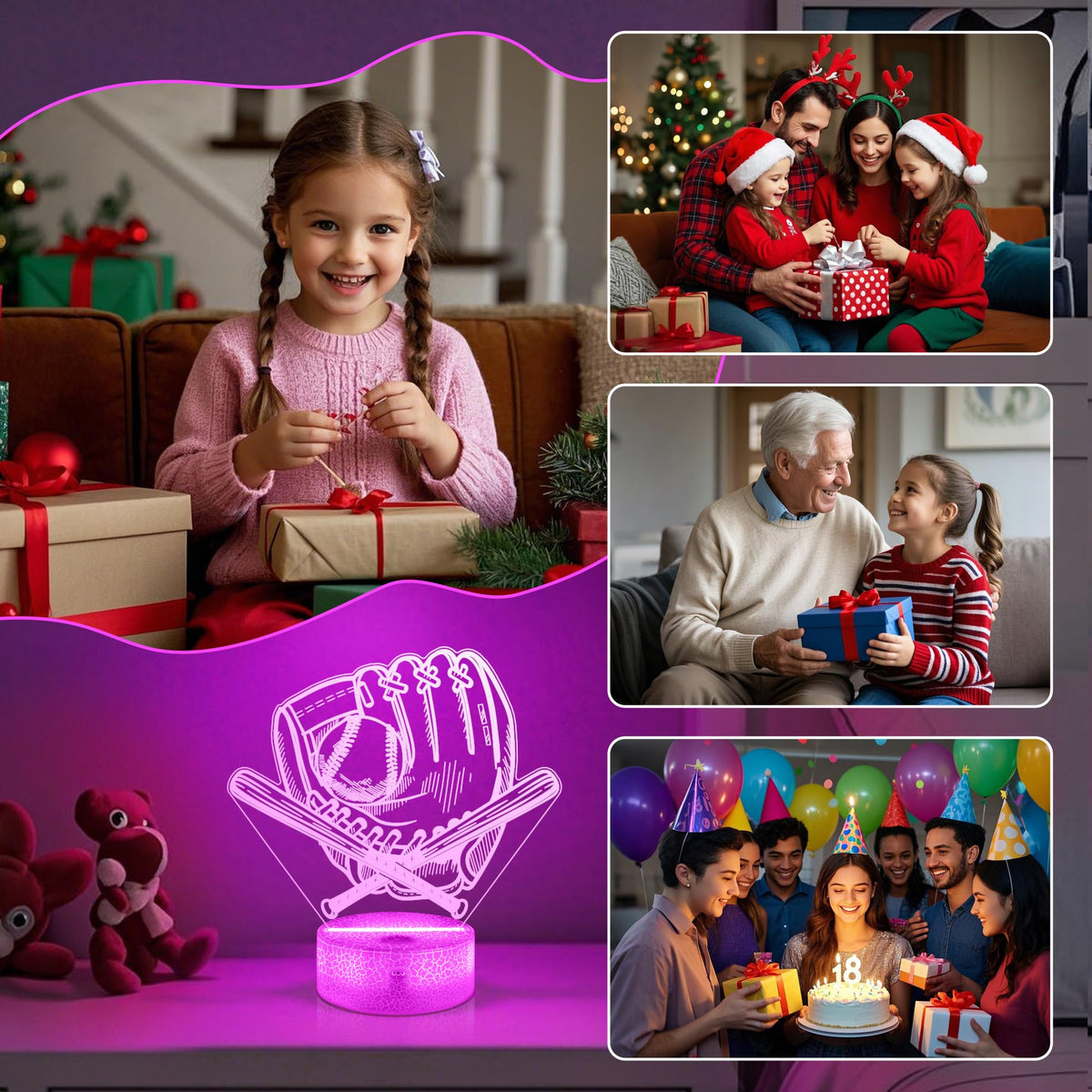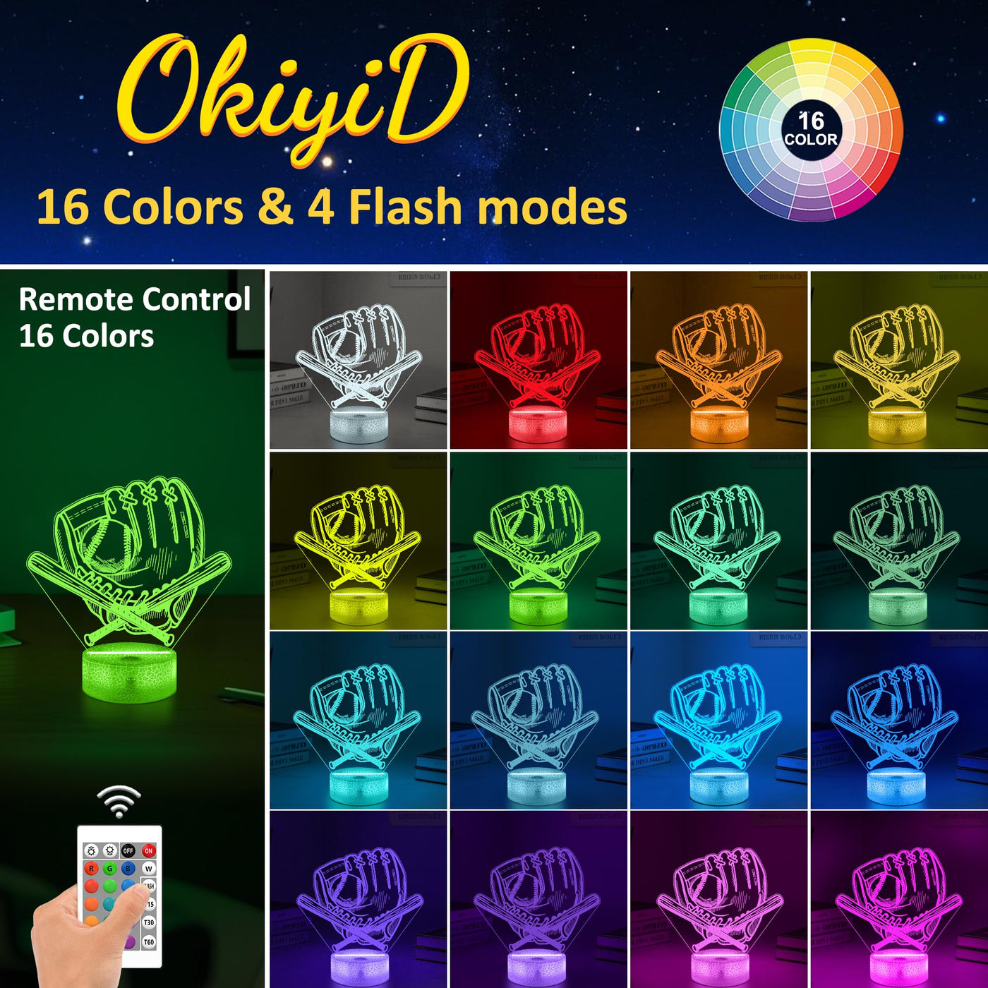 OkiyiD Softball Gifts Night Light for Girls, Softball Glove Sports 3D Illusion Lamp with 16 Colors Remote Control, Softballs Fan