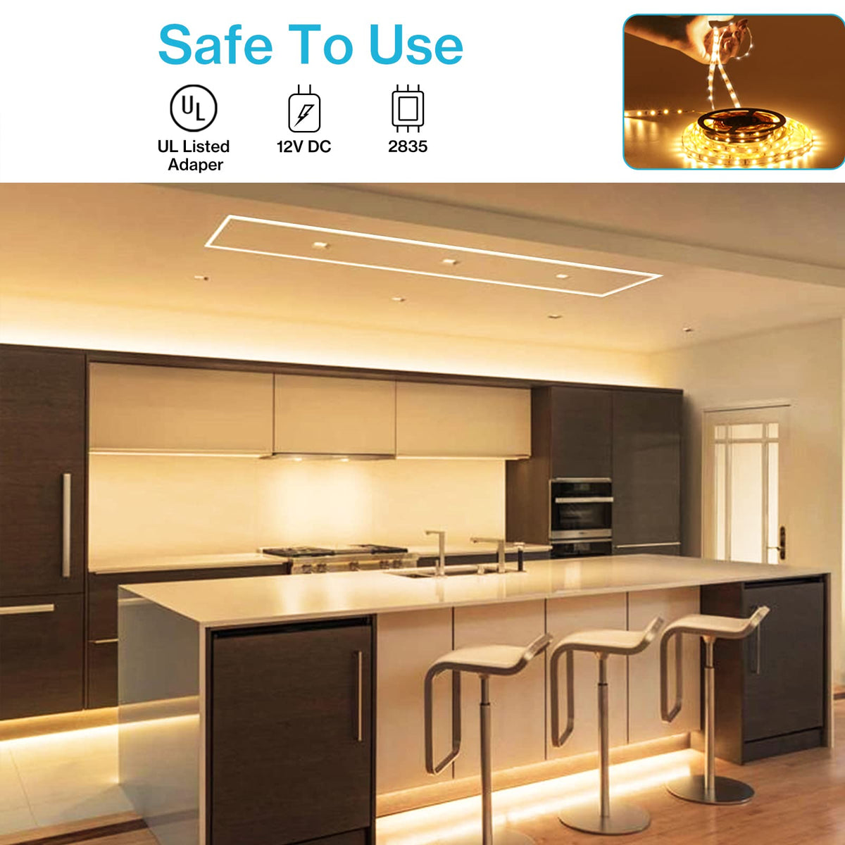 Q: Is the Olafus LED Strip Lights safe for indoor use?A: Yes, the Olafus LED Strip Lights are UL Listed, which means they meet strict safety standards for indoor use, making them a reliable lighting option for your home.