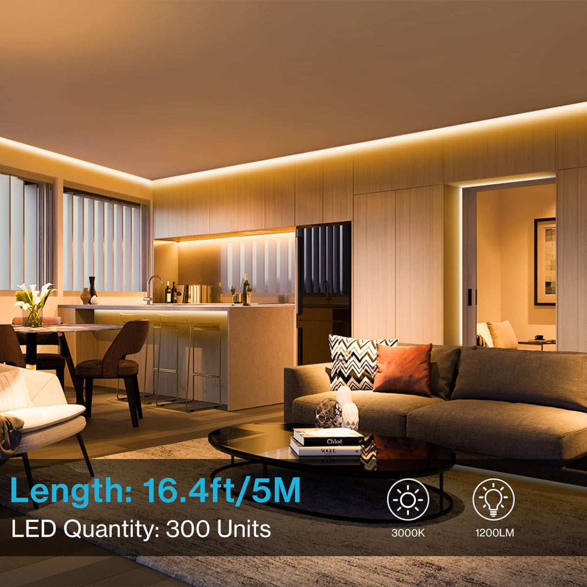 Q: What color temperature do the Olafus LED Strip Lights emit?A: These LED Strip Lights emit a warm white light at 3000K, providing a cozy and inviting atmosphere for any room.