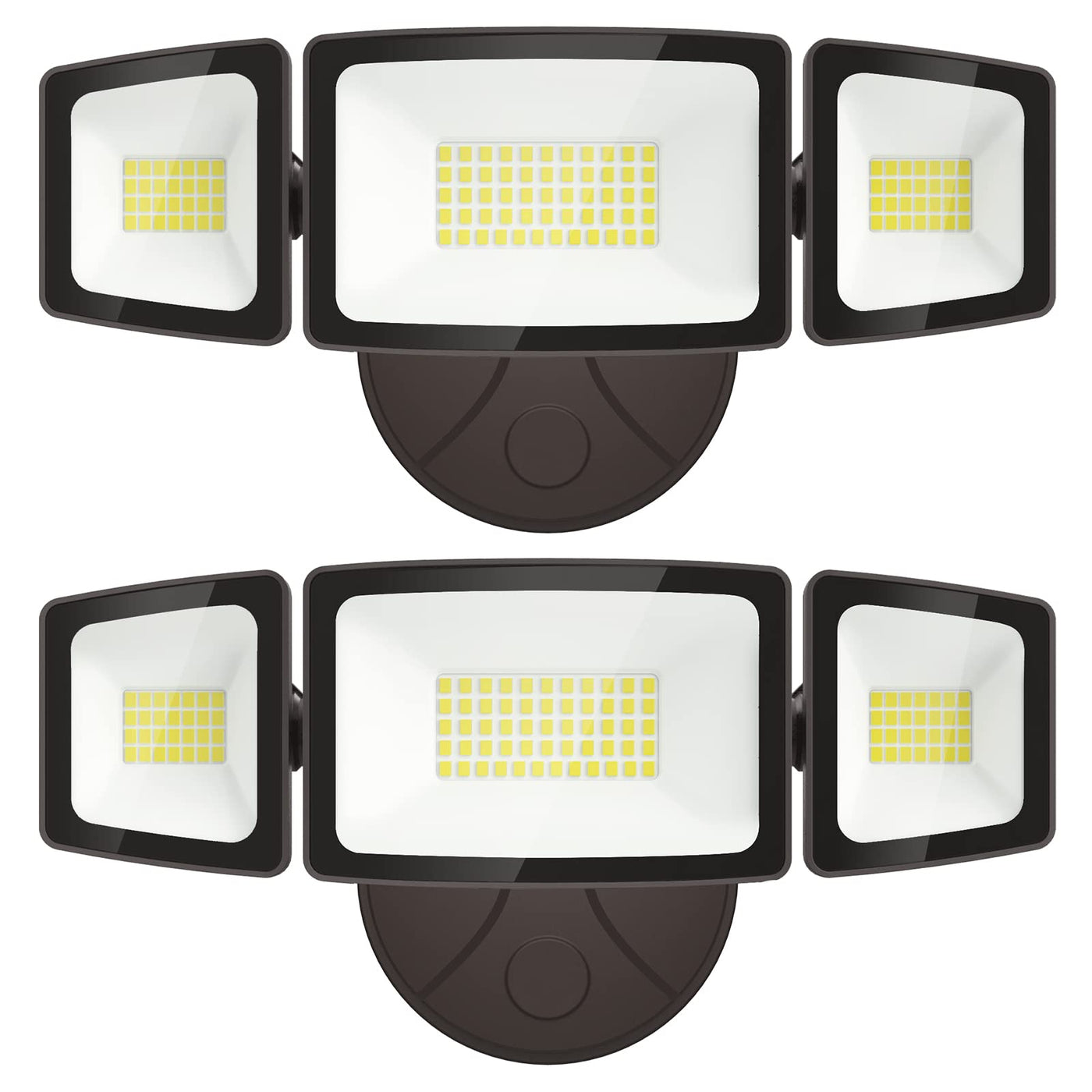 - **Expansive Lighting Coverage**: With three adjustable heads, these flood lights provide versatile lighting direction and a wide beam angle of 120°. Capable of illuminating areas up to 1150 ft², they are perfect for large outdoor spaces such as yards, patios, and driveways.
