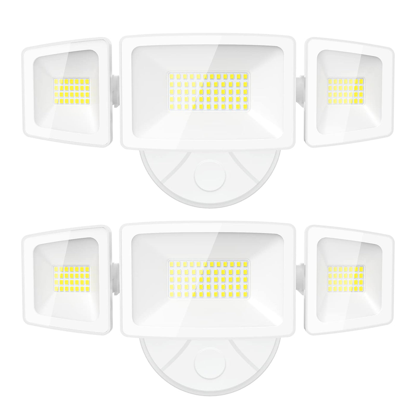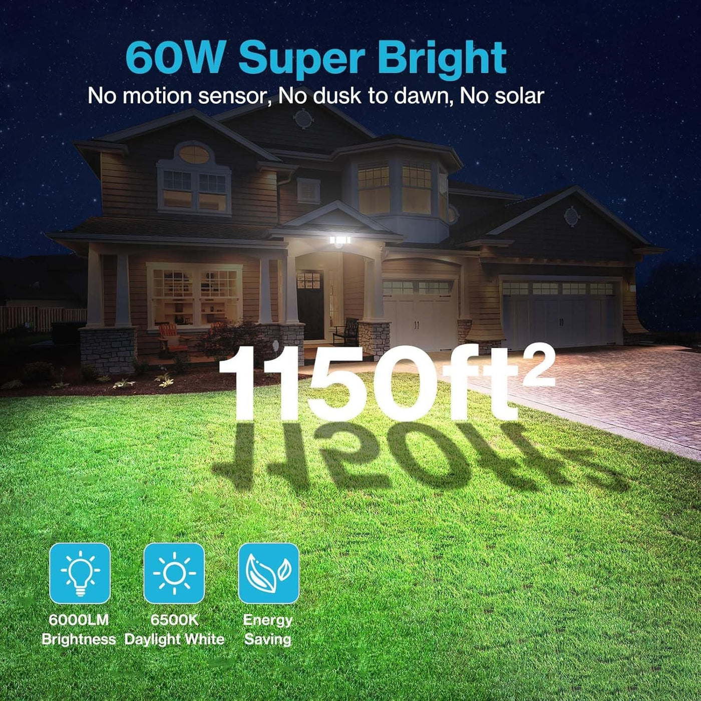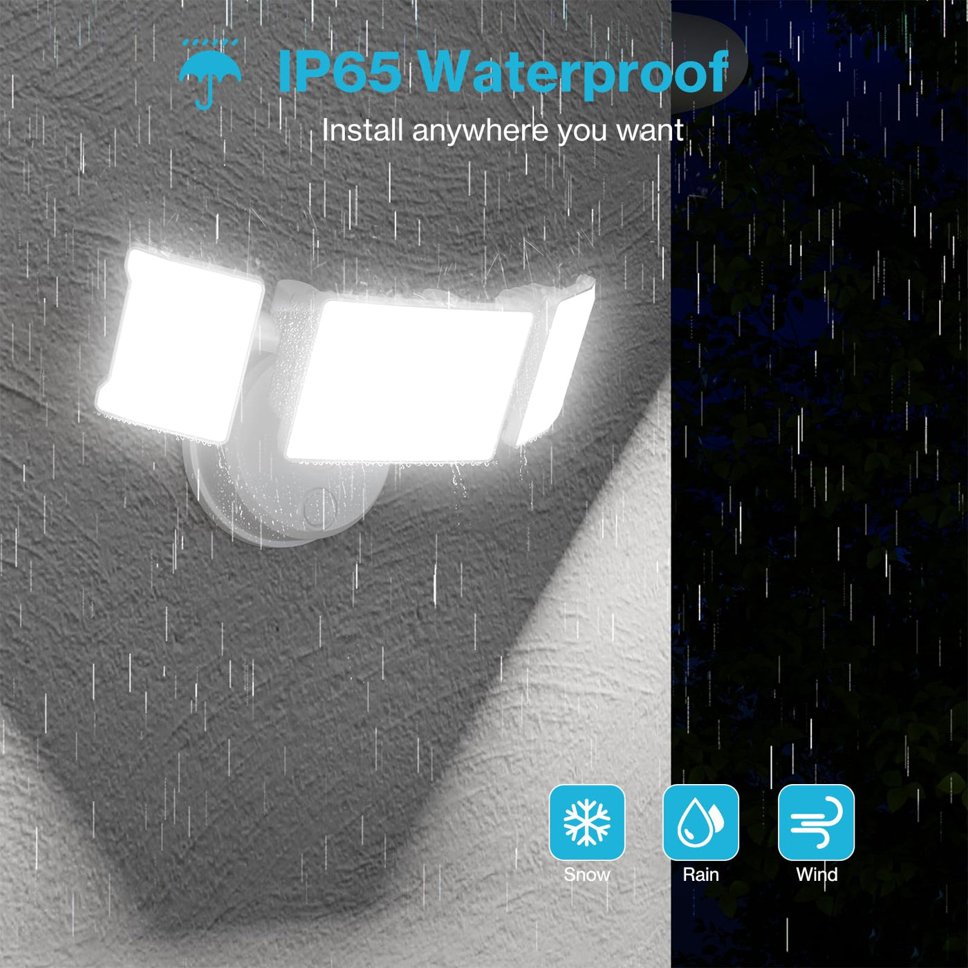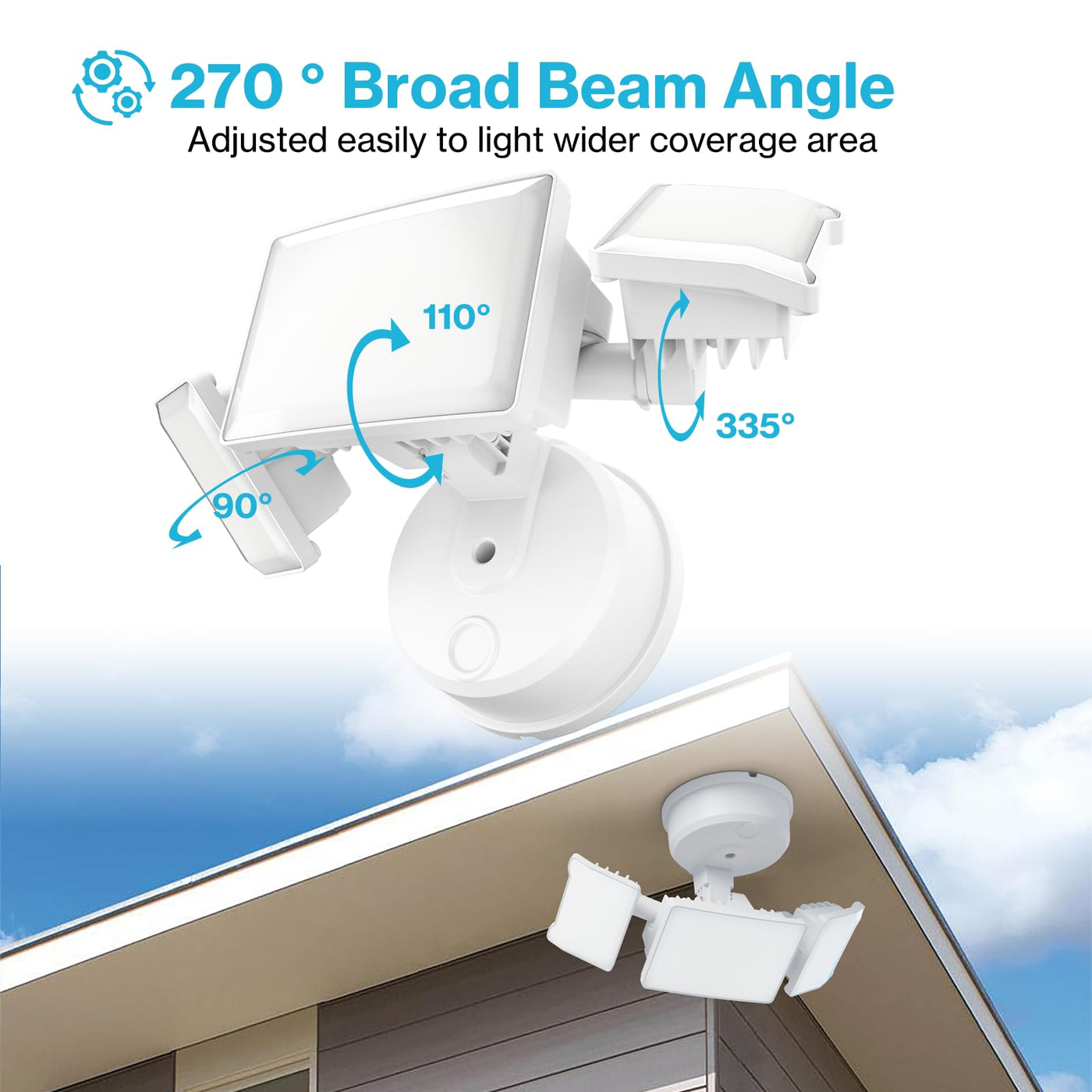 - **Expansive Lighting Coverage**: Equipped with three adjustable heads, this flood light provides a versatile lighting direction and a wide beam angle of 120°. Brighten areas up to 1150 ft², making it perfect for large outdoor spaces such as patios, yards, or driveways.