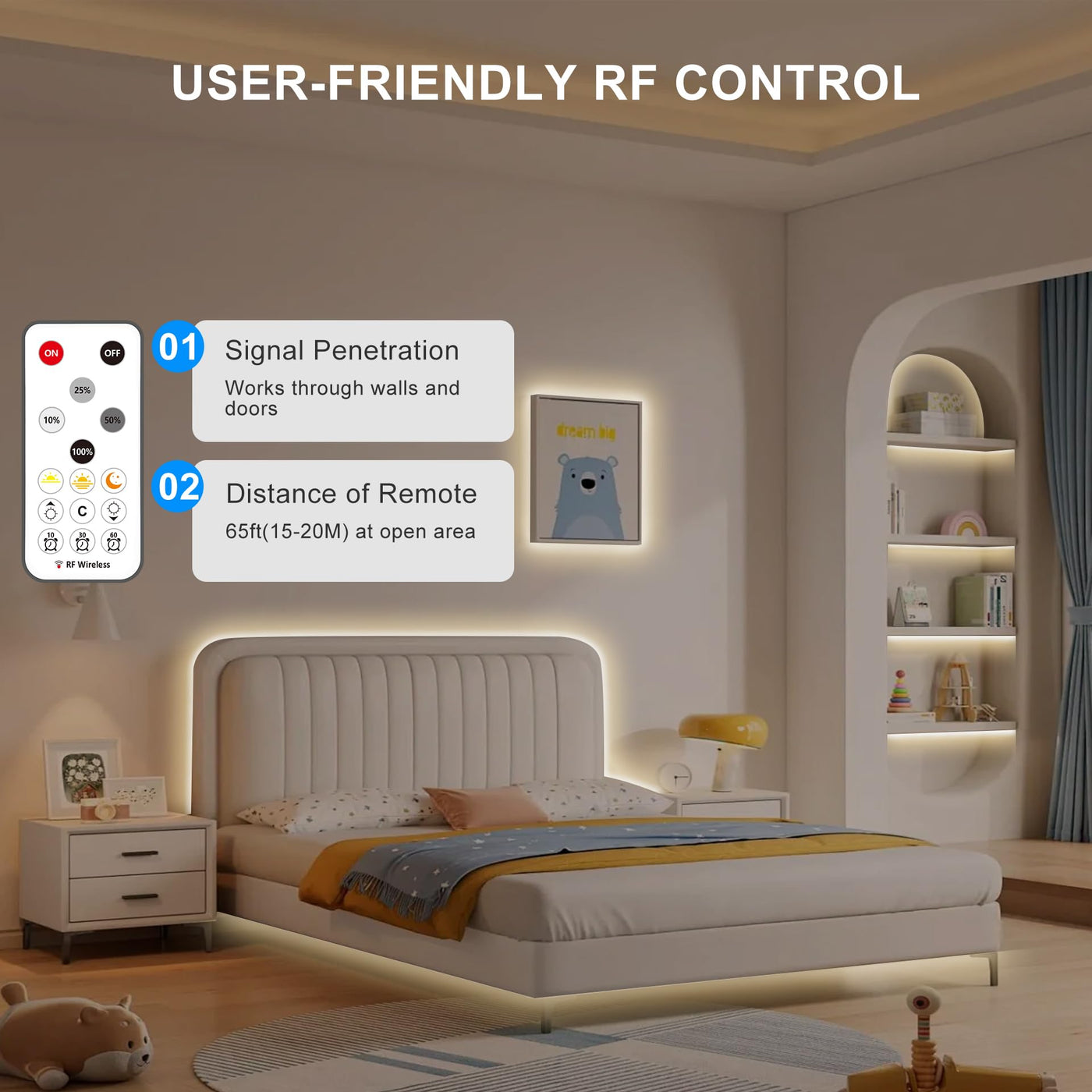 Q: Can I adjust the brightness of the COB LED strip light?A: Yes, the COB LED strip light features a dimmable function that allows you to adjust the brightness to eight different levels, ranging from 1% to 100%.