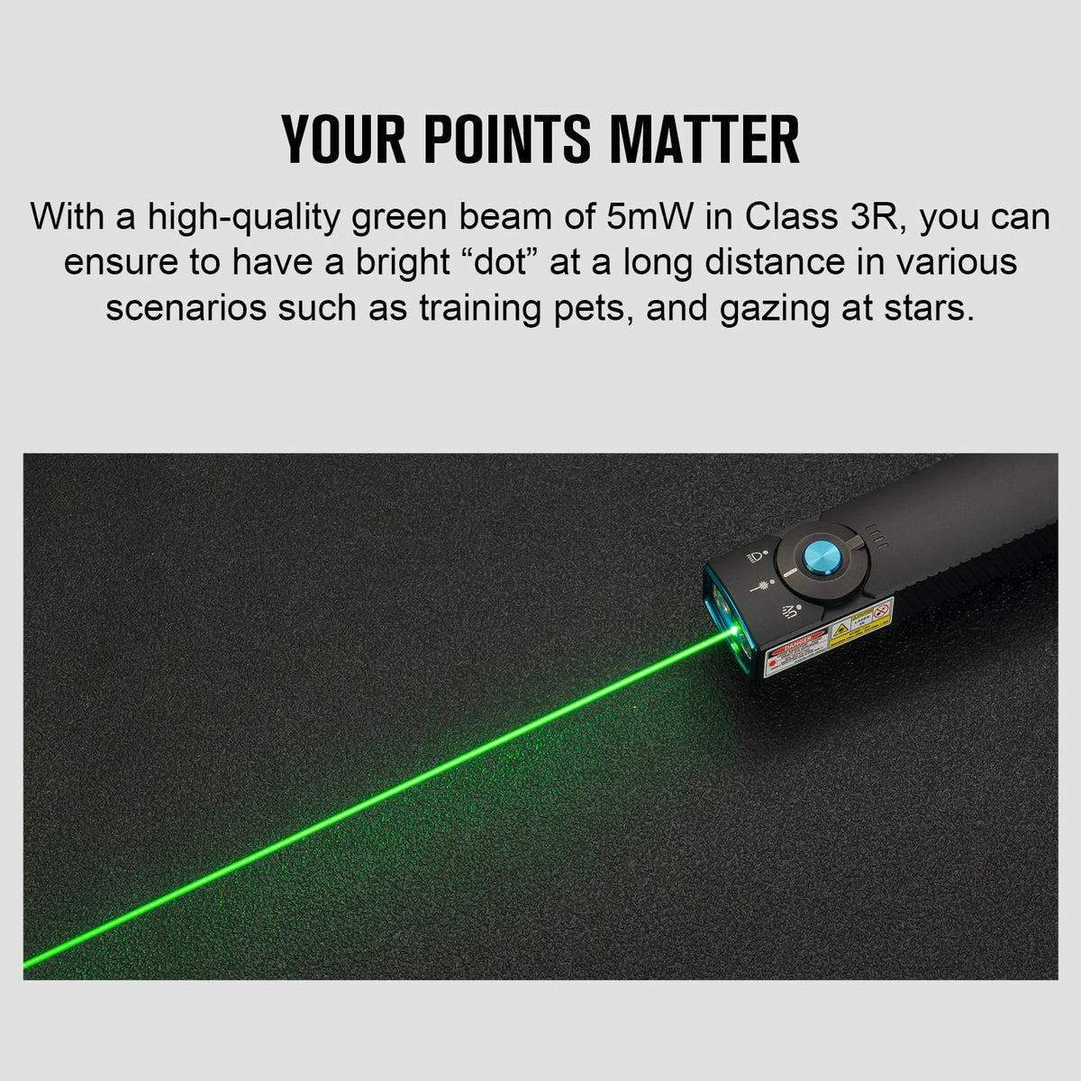 Three-in-One Functionality: Combines white light, green beam, and UV light in one compact design.