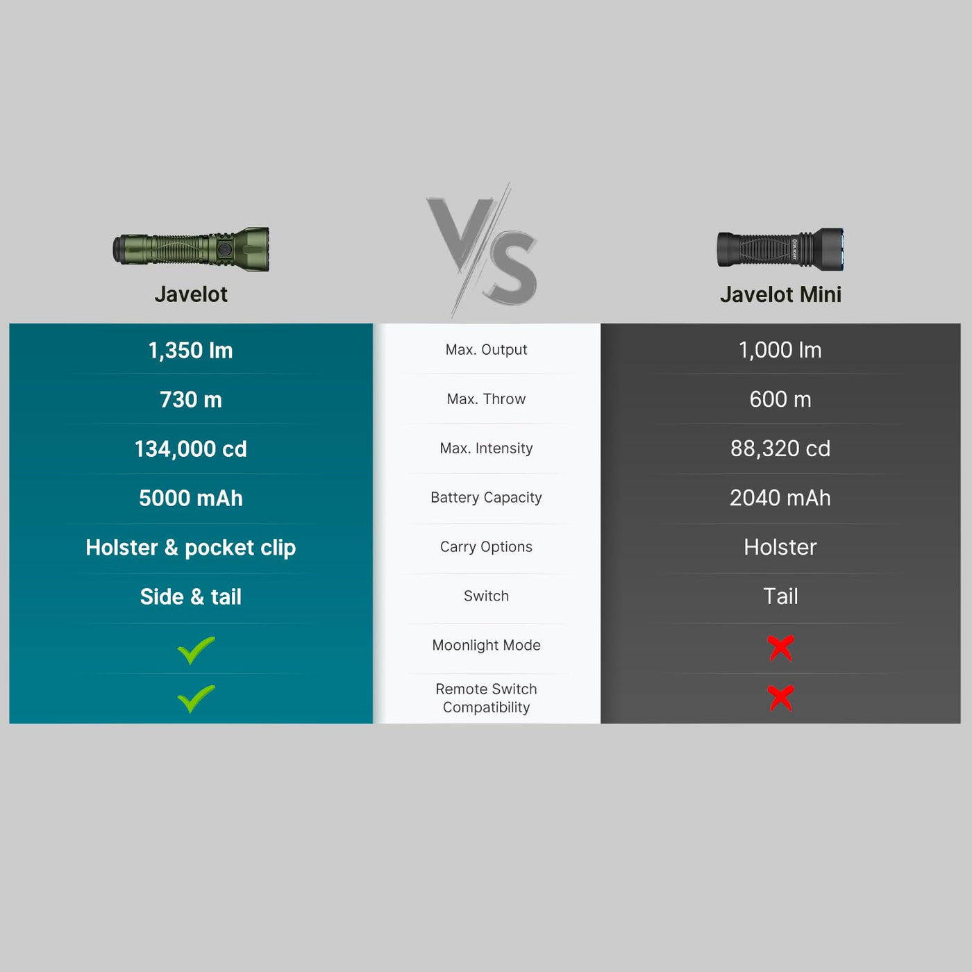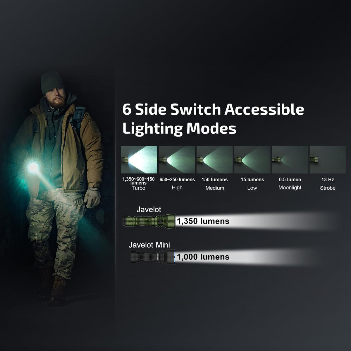 OLIGHT Javelot Powerful Tactical Flashlight 1,350 Lumens, Rechargeable EDC Flashlights Dual Switches with Long Beam 2395ft, Doub